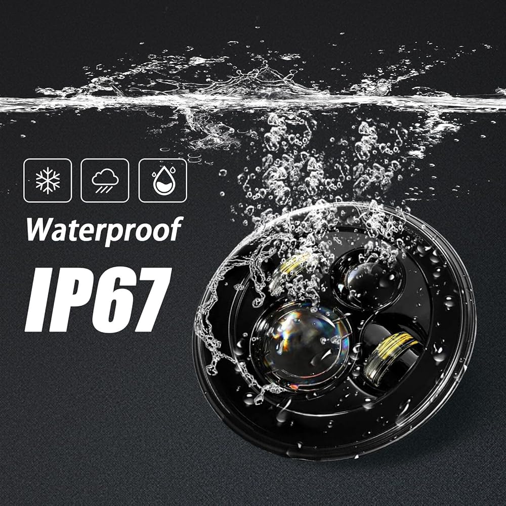 This set includes 7-inch headlights including Fat Boy, Heritage Softail Classic, Switchback FLD, Road King CVO, Street Glide, Electra Glide, Tri Glide Ultra Classic, Electra Glide Ultra Classic, Electra Glide Ultra Classic, etc. Fits any motorcycle model. 7-inch round LED headlight, high performance high-low beam. Excellent light output yet soft light, effectively relieve driving fatigue. Excellent waterproof and dustproof performance. AE/DOT compliance ensures accurate beam pattern distribution and precise fit. Plug and play, includes LED ballast, LED canvas and H4/H9 adapter.