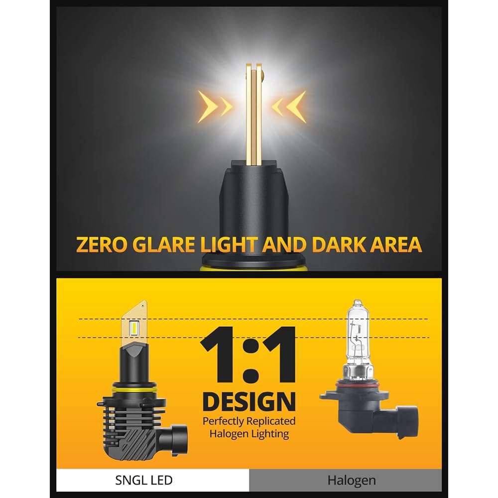 500% brighter than halogen: Each SNGL h10 LED fog lamp adopts high power 6CSP LED chips, providing 13000LM/set light output. 500% brighter halogen fog lights; 6500K white light allows you to see far and wide and drive safely on the road. 1:1 SAFE BEAM PATTERN DESIGN: SNGL 9145 LED fog light bulbs ensure 360° illumination with halogen filament placement design and 0.039 inch ultra-thin chip copper plate - increase the intensity of the central light, distance and width Improves road visibility, does not dazzle bright and dark areas, and does not blind oncoming vehicles. Optimal Cooling Design: SNGL 9145 LED bulb features full body aviation aluminum with copper circuit board and constant current intelligent IC LED technology. Faster heat dissipation, long service life of over 50,000 hours, no need for frequent replacement. 10 minutes plug and play installation: SNGL h10 fog lamp is wireless & fanless & non-polar & plug and play design. 1:1 mini size body fits perfectly into front fog lights and DRL housings. Replacement for 9040/9045/9140/9145/PY20D/9155/H10 LED fog lights or halogen bulbs. Compatible with Canbus 99% Vehicles: IP67 waterproof and dustproof, SNGL 9140 LED fog light bulbs are suitable for rainy, foggy, dusty and snowy days. Easy to see even in extreme weather. No radio interference, no errors.