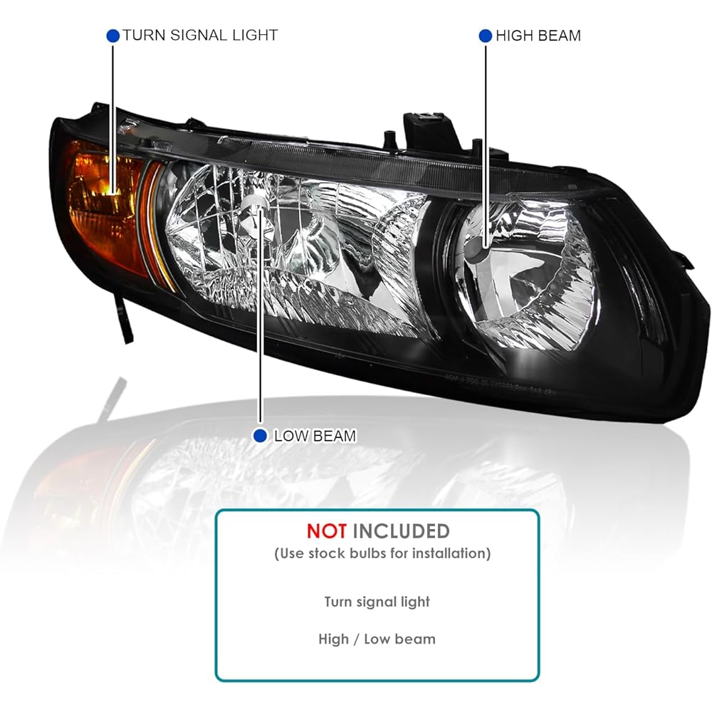 1 pair of black housing/clear lens headlights. Directly replaceable. Set uses stock bulbs (bulbs not included). 30 Day Money Back Guarantee & 90 Day Limited Warranty Manufactured by an OEM Approved & ISO Certified Manufacturer using materials that meet or exceed strict OEM requirements.