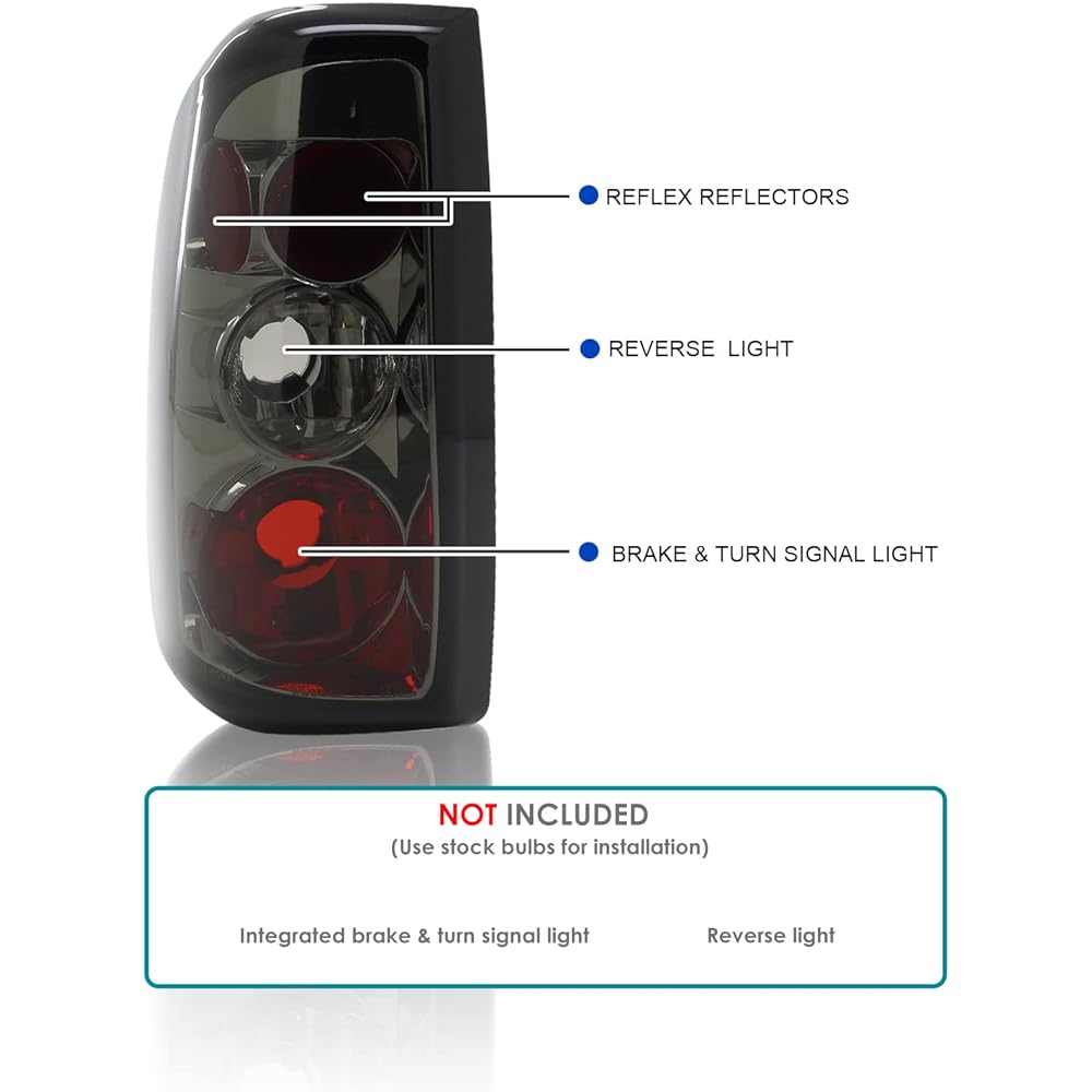 1 pair of chrome housing/smoked lens Altezza tail lights. Direct replacement for stock assemblies 30-day money-back guarantee & 90-day limited warranty Manufactured by an OEM-approved and ISO-certified manufacturer with materials that meet or exceed strict OEM requirements.