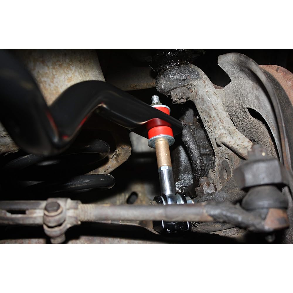These spherical front sway bar end links connect to the front lower A-arms with chrome-plated, self-lubricating Teflon-lined chrome-moly spherical joints, providing a bind-free connection for maximum handling performance. It doesn't matter if you're running a factory front sway bar or a large aftermarket front sway bar. Our spherical front sway bar end links maximize your front sway bar. The stresses applied to the front sway bar end links are severe and require end links that don't flex or bind to get the maximum handling performance you're looking for. Simply bolt the included CNC laser cut and 3/16" steel clevis to the front lower A-arm end link mount using basic hand tools. The clevis has a gloss black powder coated finish and includes all necessary mounting hardware for bolted installation. The top of our spherical front sway bar end links connect to the front sway bar with low deflection polyurethane bushings. Silver galvanized high strength 4140 chrome moly thread studs connect everything together. Price per pair - Quantity. 1 = 1 pair.