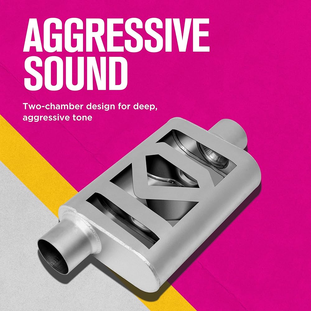 The two-chamber design delivers deep, coagulated tones. It has a 3" inlet and a 2.25" outlet. High temperature metallic finish or 304 polished stainless steel. Slash logo embossed on the muffler cover. Total length 19 inches.