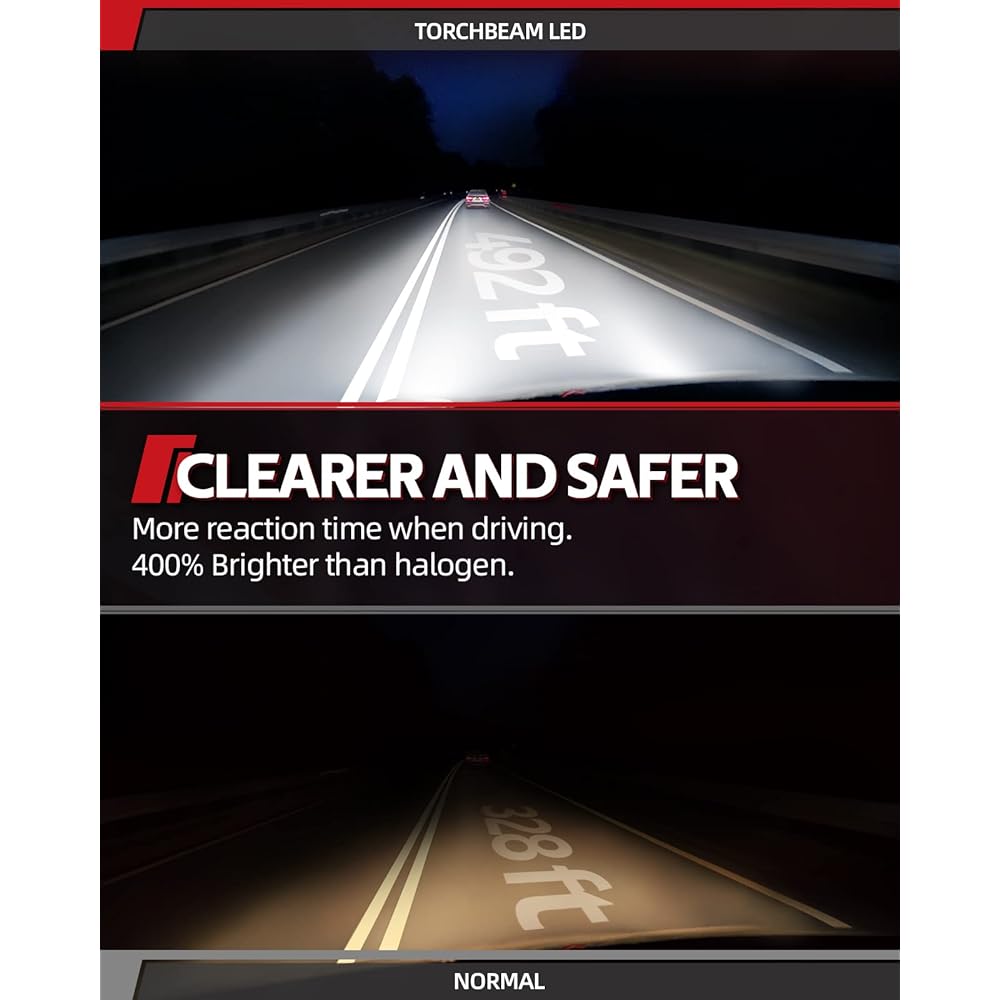 Torchbeam T2 9005/HB3 9006/HB4 LED Headlight Bulb Kit. In addition to the optical and safety benefits, installing Torchbeam LED headlights on your car is a great way to give your car a cool new look. The bright 6500K white light gives your car a sleek, modern look that's incomparable to the dim, yellowish light of halogen bulbs. You can expect superior performance and equally impressive longevity from Torchbeam's LED headlights. Note: 1. If you experience flickering or receive an error message, a CANbus decoder may be required on some vehicles. 2. If the DRL (daytime running lights) use the same bulbs as the low beam headlights, the light may be too strong to operate in DRL mode. 3.Specifications: Model: 9005 9006 LED headlight bulb kit. Lifespan: More than 50,000 hours. Color temperature: 6500K cool white. Voltage: 12V-24V. Features: 360 degree lighting. Plug and play connection. 400% brighter than regular halogen bulbs. No wireless interference. What you get: 2 x 9005 LED headlight bulbs from Torchbeam. 2 x 9006 LED headlight bulbs from Torchbeam. 1 instruction manual (may not be in Japanese).