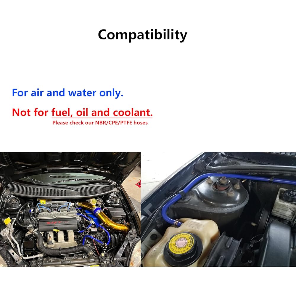 Package contents: 6 blue vacuum hoses with inner diameters of 3mm, 4mm, 5mm, 6mm, 8mm, 10mm (1 of each size). Length: 5ft (1.5m) Wall thickness: 1/8 inch (3mm) Made of high temperature reinforced silicone. Working pressure: 0.3~0.9MPA Minimum temperature: -40℃ Maximum temperature: 220℃/428℉ Air and water only. Cannot be used with gas or oil. Quality tested to ensure long-term performance.