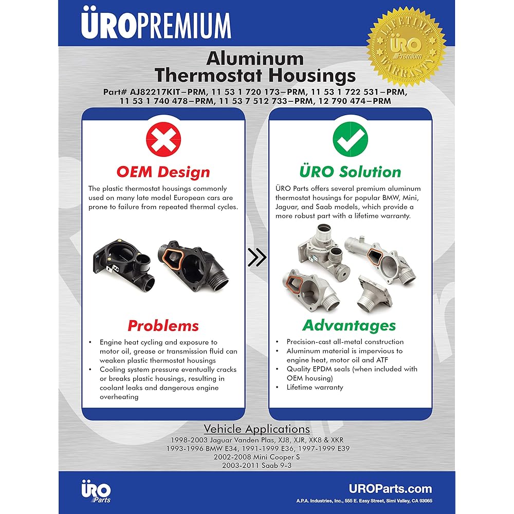 URO PARTS 11 53 1 722 531-PRM aluminum thermostat cover