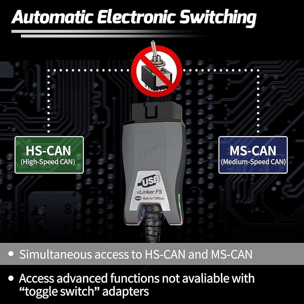 VGATE VLINKER FS OBD2 USB Adapter for-Scan HS/MS-CAN Auto Switch