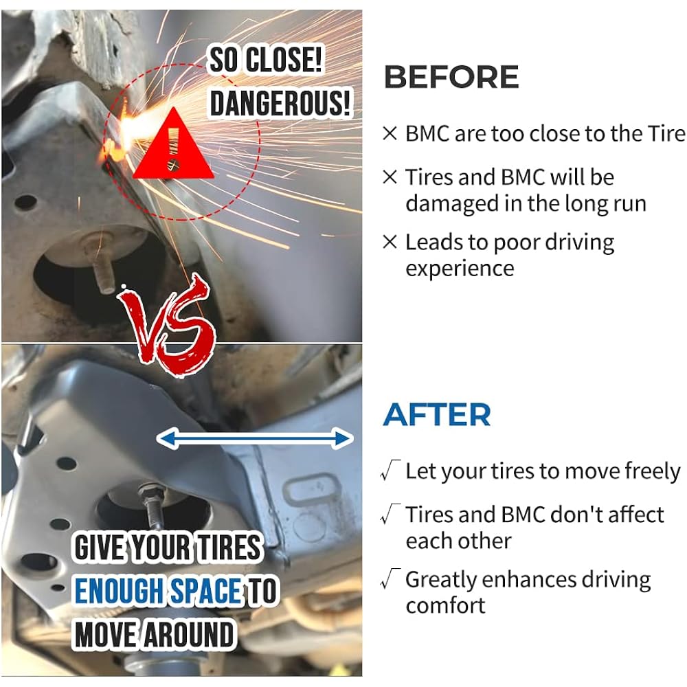 [Specially for Tacoma] Our body mount chop plate is compatible with 2005-2021 Toyota Tacoma, especially 2nd and 3rd generation Tacoma. I ordered more vehicles to "take care of", made a lot of adjustments, and got this more adaptable plate. 【Free Your Tires】Replacing the cab mount chop with our CMC plate greatly improves the gap between the cab mount and tire, allowing you to install larger off-road tires with confidence. I can't hear the dreaded "RUBBING" sound. [Excellent Durability] ``You only need this once.'' Our BMC steel plate is made of 45# steel, which is harder and more suitable for Tacoma's original quality requirements. When bonded correctly, it is very safe. [Exact Dimensions] 】This CMC plate is 5.7 inches long, 2.56 inches wide, and 0.4 inches thick and fits most 2005-2021 Tacoma vehicles. Before purchasing our product, please check whether it will fit your vehicle. or measure your CMC. 【Detailed Installation Instructions】 No need to worry about installation method, detailed instructions are provided. ) and the necessary installation tools.