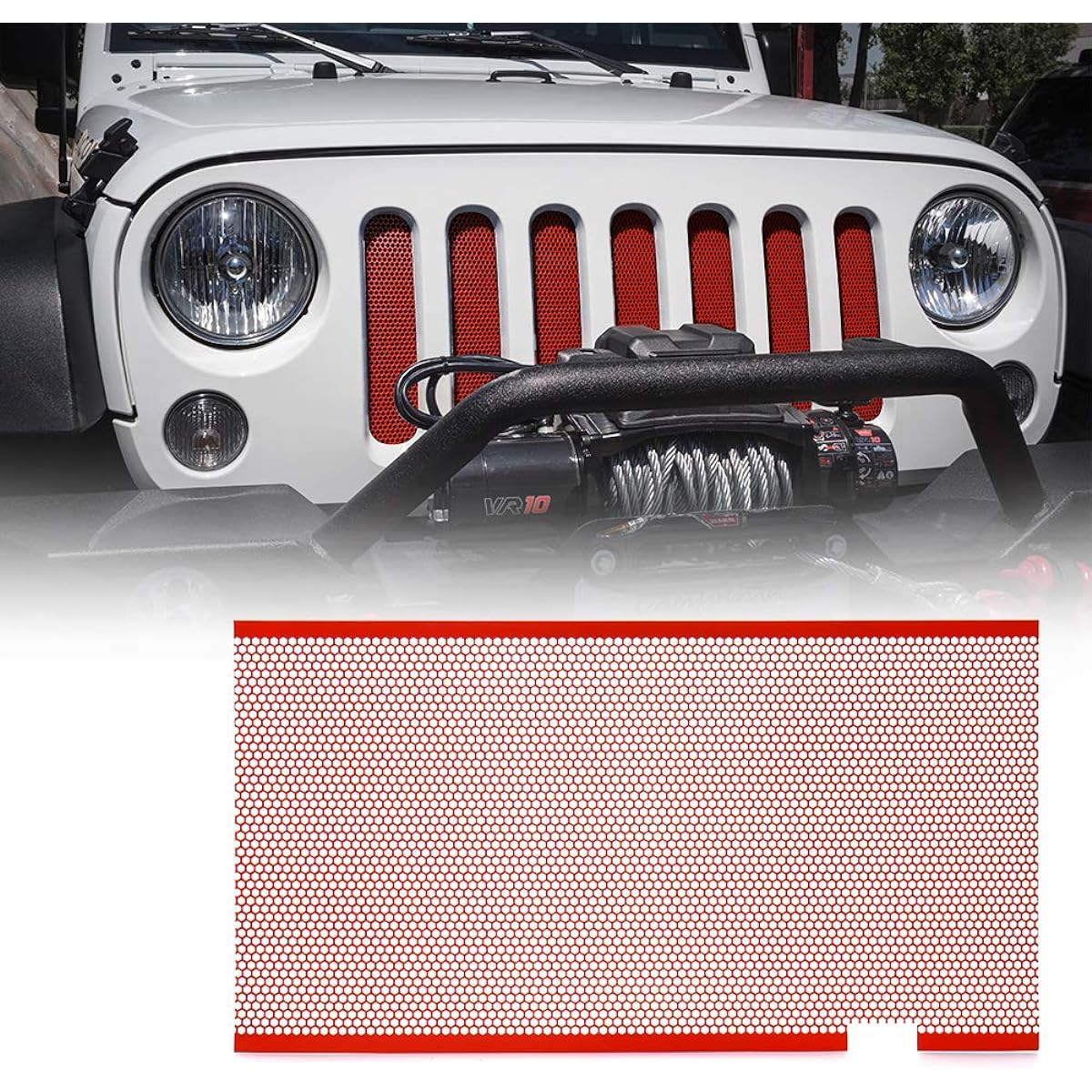 Features - Personalize your JK with red grille accents and fits perfectly inside the stock grille. FUNCTION - Xprite grille insert protects your radiator from debris while off-roading. Perfect ventilation design maximizes airflow to the engine and radiator for optimal performance. Construction - Made of high quality aluminum alloy, strict quality control testing in the factory, high strength and anti-corrosion. Easy to install - no drilling required. Fits perfectly inside the stock grill. Compatibility - Compatible with 2007-2018 Jeep Wrangler Rubicon Sahara Sport JK JKU.
