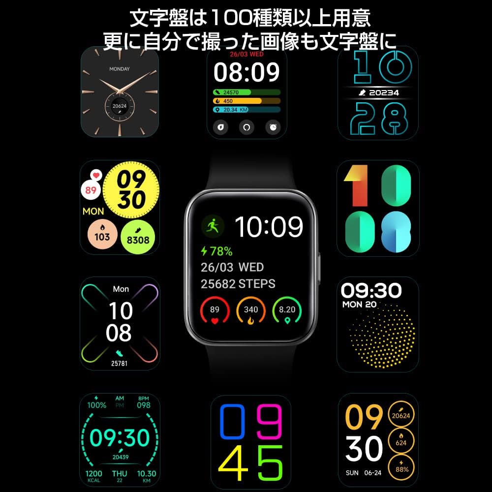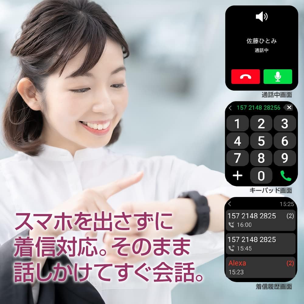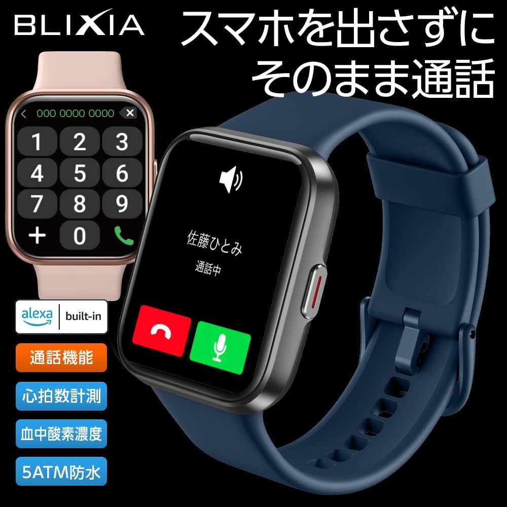Other functions: Bluetooth call function, heart rate monitor, blood oxygen concentration meter, 1.69 inch large screen, weather forecast, stopwatch, Instagram /Line/Twitter/Email/Incoming call notification Sleep management, waterproof to depth of 50m Alexa compatible