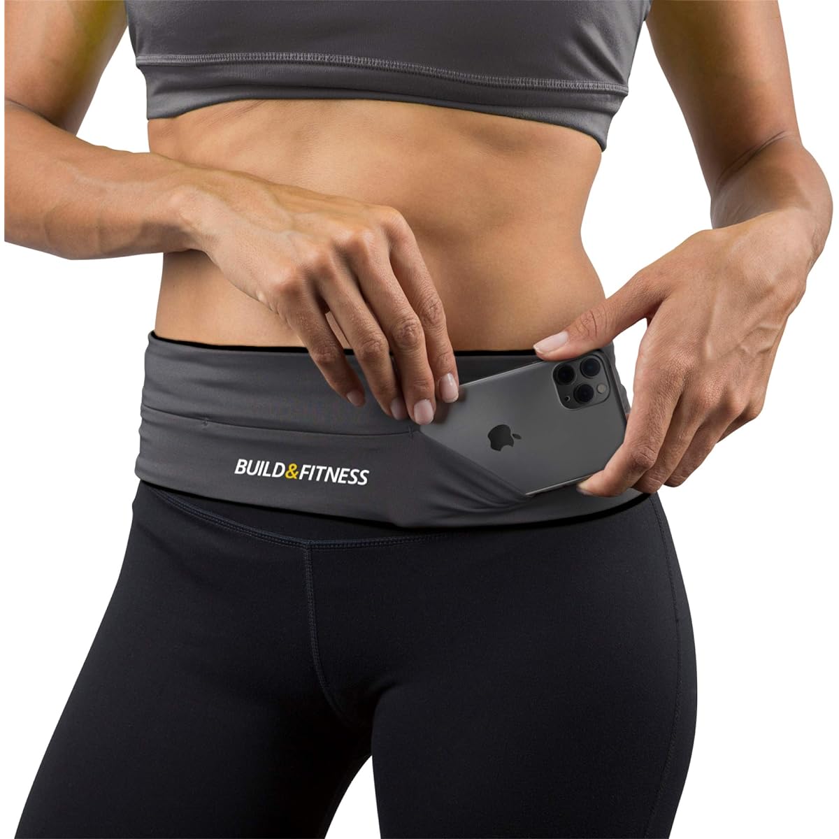 Build & Fitness Running Belt, Flip Waist Belt, Key Clip, Compatible with iPhone and Samsung.