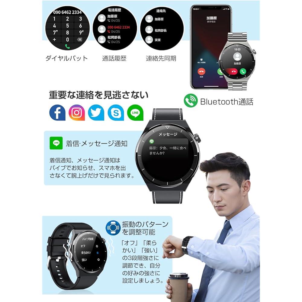 Smartwatch round shape [Bluetooth calls & 3 types of belts included & wireless charging] smartwatch 1.36 inch sapphire glass display Bluetooth 5.2 20 exercise modes IP68 waterproof Voice assistant Call/message notification Password setting Hundreds of wa
