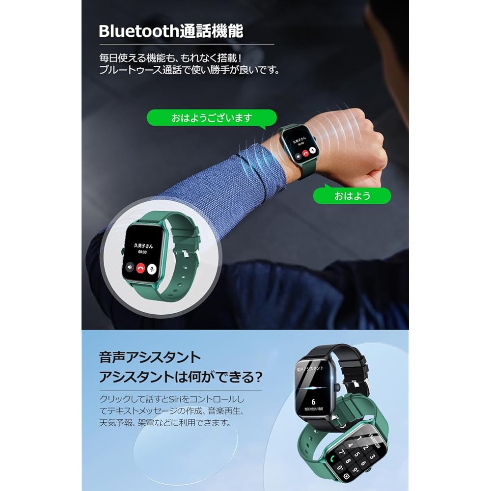 [Full of useful features, call function/app notifications/shortcut keys, etc.] ●Smart watch with call function: It works with your smartphone via Bluetooth, and has functions such as making calls and rejecting calls. You can use your watch's display, microphone, and speaker to make calls. You can make Bluetooth calls even when your phone is in your pocket or bag. ●Notification function: Messages, calls, emails, SNS notifications, etc. are displayed on the watch, allowing you to check important information without missing anything. ●Shortcut keys: Your watch may have shortcut keys for frequently used functions (calls, exercise mode, weather forecast). ●Voice assistant: Many smartwatches have built-in voice assistants (e.g. Google Assistant, Siri). ●Alarm: You can use it as an alarm clock, and the watch will notify you with vibration or sound at the time you set in the app. [For exercise/Exercise data recording/IP68 waterproof/GPS linkage] ●110 types of exercise modes: The activity meter has 110 types of exercise modes such as running, walking, cycling, etc., and the mode for each of the various exercise modes. You can perform specialized data recording. You can measure information such as distance, time, pace, etc. and check it on the app. In addition, accurate location information is obtained through the built-in GPS function and cooperation with smartphones. When doing outdoor activities like running or cycling, you can track your route, measure distance, set your pace, and more. ●IP68 waterproof: Many smart watches have IP68 waterproof performance. This indicates that it is waterproof against water pressure at a certain depth. ●Timer and countdown: Smart watches are equipped with timer and countdown functions. It is active during exercise. [Freely set 200+ dials, 1.85-inch large screen/Lightweight and thin] ●The small smart bracelet allows you to freely set over 200 dials using the app, and is equipped with a large 1.85-inch screen. Plus, it has a lightweight, low-profile design. This watch supports Japanese and offers many features. ●You can freely choose the design of the watch, so you can match it with a variety of styles. You can also customize the dial with your favorite photo. The large 1.85-inch screen displays information clearly and is easy to operate. ●Lightweight and thin, so you won't feel the weight even when wearing it, and you can use it comfortably. ●Completely supports Japanese and has a wide range of functions suitable for use in Japan. This smart watch is convenient and easy to use for various activities and daily life. [Bluetooth 5.3, password configurable, long-lasting battery] ●Bluetooth 5.3 provides faster data transfer speeds and wider coverage range than previous versions. This allows for quick and stable connectivity between your smartwatch and other devices. ●Furthermore, you can set a password. This provides an additional level of security to protect your personal data and privacy. ●It is also equipped with a long-lasting battery. It can be used for a long time with a single charge, reducing the frequency of charging and providing comfortable use. It is a smart watch that is useful in various activities and daily life. [Various multi-functions, daily life support, 1 year warranty service] ●Equipped with various functions to meet various needs. It also offers features that make your daily life more convenient. Equipped with many functions such as Japanese support, calculator, data style change, games, camera control, smartphone search, music control (music playback can be set on the watch or on the smartphone). ●It also comes with a 1 year warranty service. It can be used with peace of mind as it can be used in the event of a malfunction or failure. During the warranty period, support including repairs and replacements will be provided.