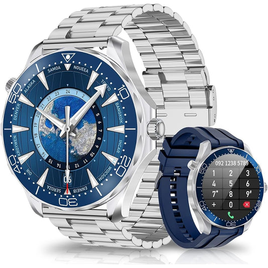 Smart Watch, Round 2 Bands, Bluetooth 5.2 Calls, Smart Watch, 1.52 Inches, Sapphire Glass Display, 100 Exercise Modes, IP68 Waterproof, Compass, Sports Watch, Incoming Call Notifications, Line/Message
