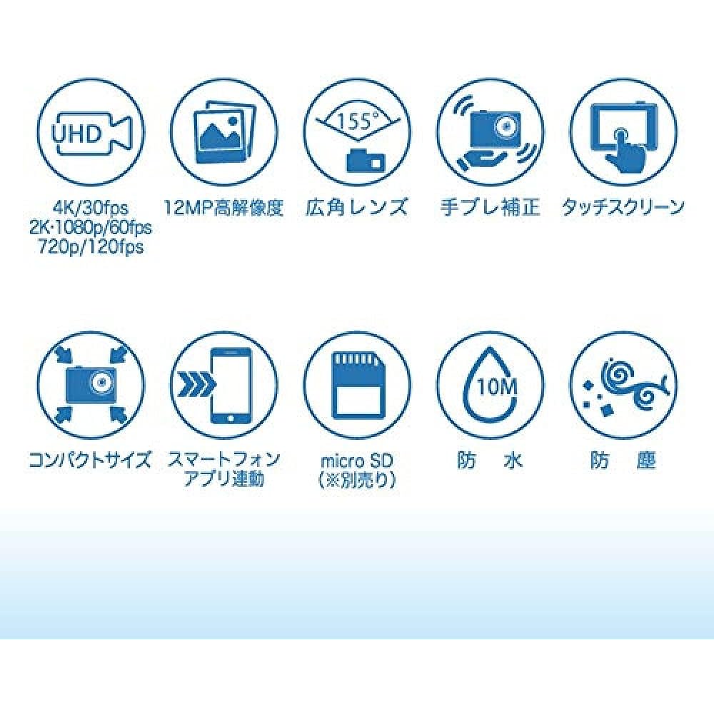 Action camera 4K shooting ultra waterproof anti-shake Wi-Fi compatible camera 2.0 inch IPS touch screen AMEX-D01 Aoki Seisakusho Black