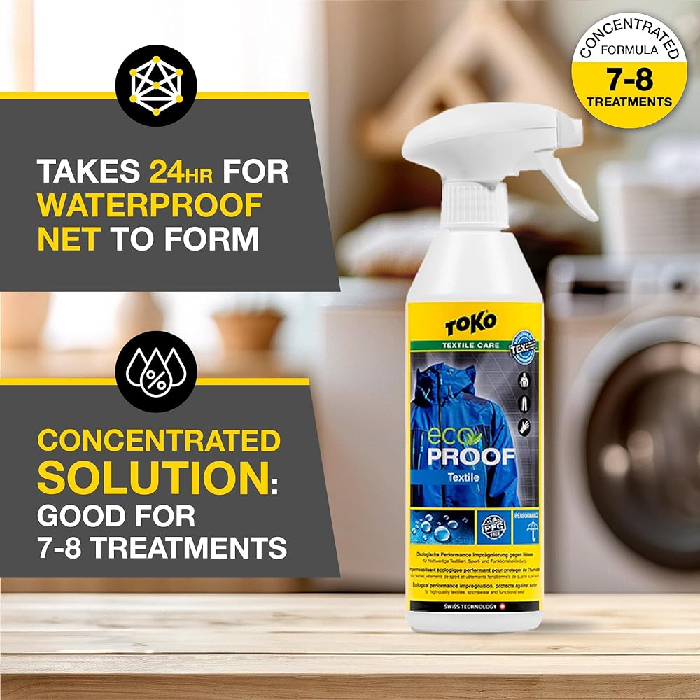 TOKO Water Repellent Spray for Skiing, Snowboarding, Mountain Climbing, Outerwear and Rainwear, Eco Textile Proof, Silicone Contains