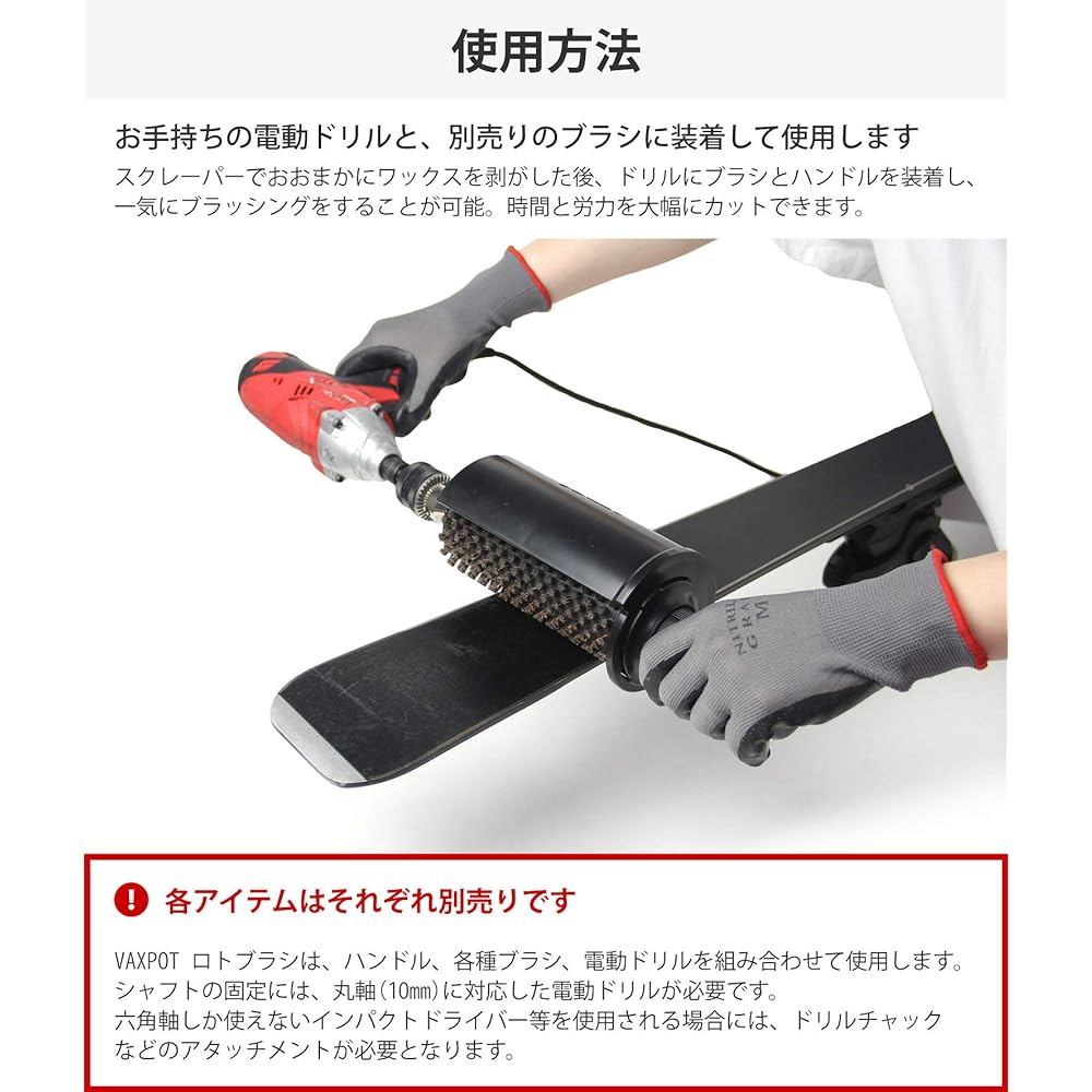 Roto Brush reduces effort when maintaining skis and snowboards. Brushing that needs to be done multiple times with hot waxing etc. can be done efficiently. *To brush, you will need a handle, shaft, various brushes, and an electric drill. *An electric drill compatible with a round shaft (10 mm) is required to fix the shaft of the Roto brush. If you are using an impact driver that can only use a hexagonal shaft, you will need an attachment such as a drill chuck.