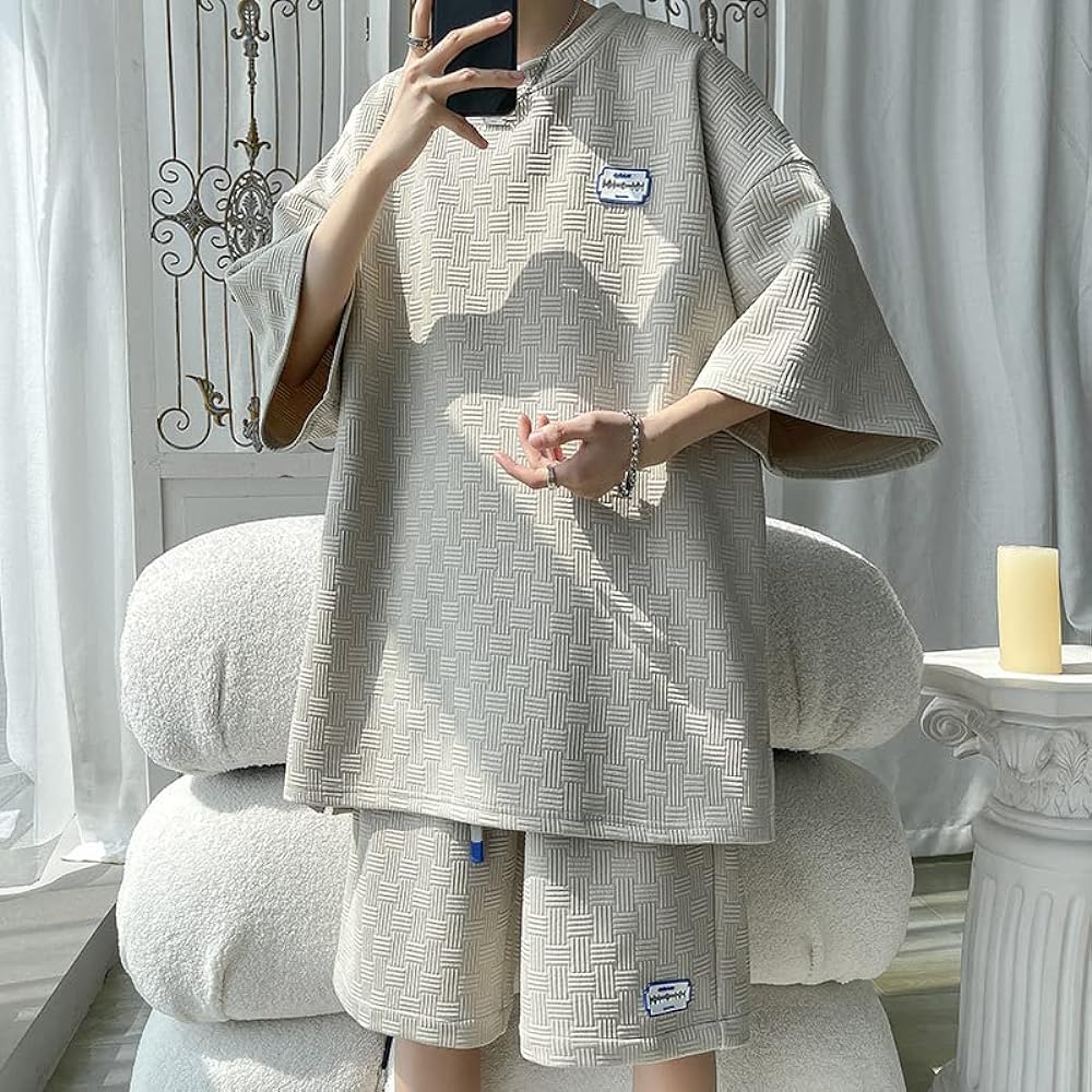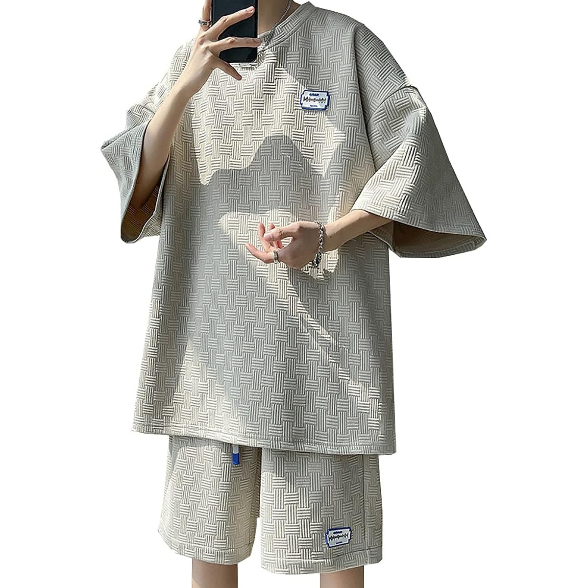 [ANGELCITY] Summer Setup Men's Large Size Sweat Jersey Short Sleeve Short Pants Top and Bottom Set T-Shirt Shot Pants 2 Piece Set Sportswear Room Wear Summer Clothes Training Sports Stylish L951