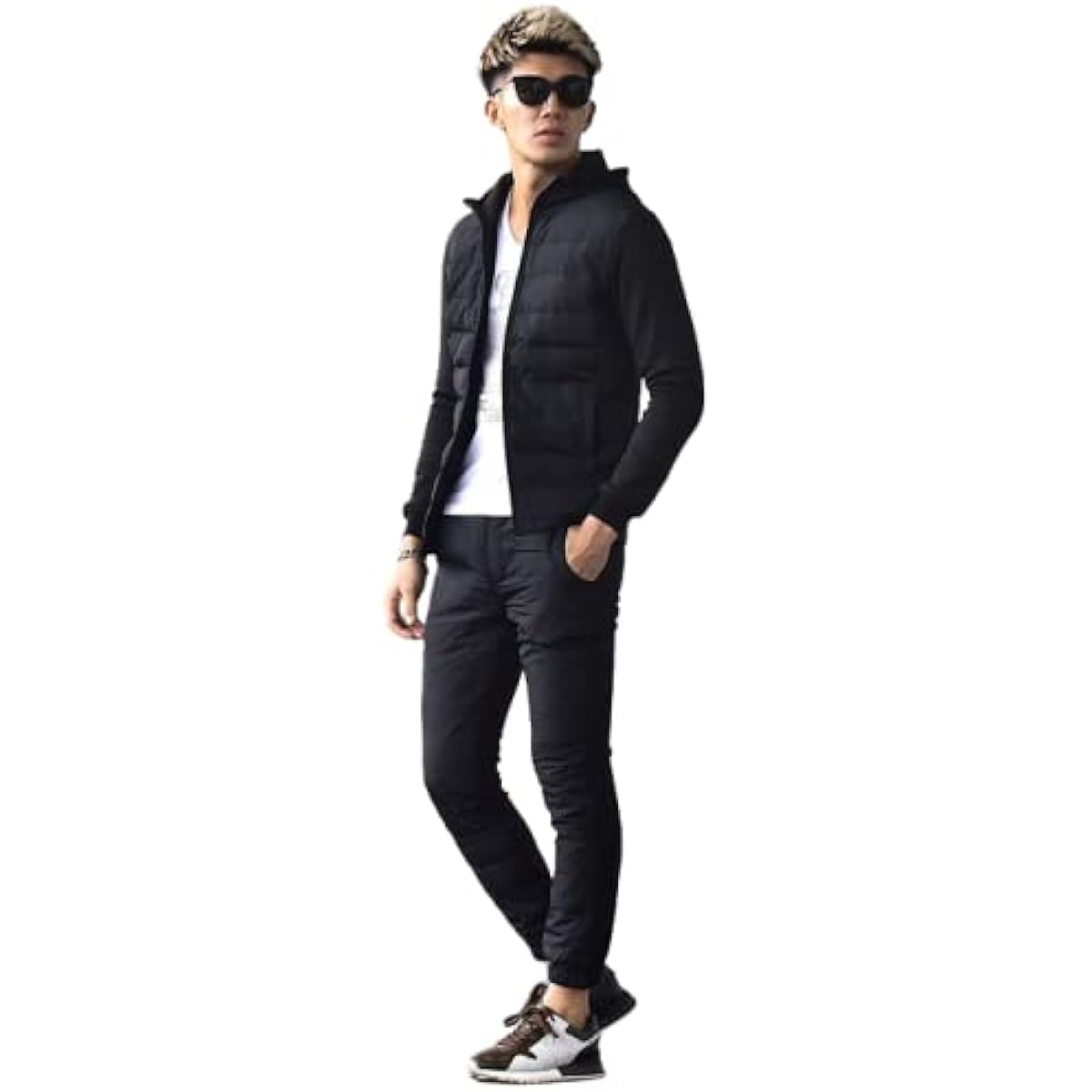 Front down setup, top and bottom set, winter, men's, cold protection, slim jogger pants, skinny, brushed lining (Joker)