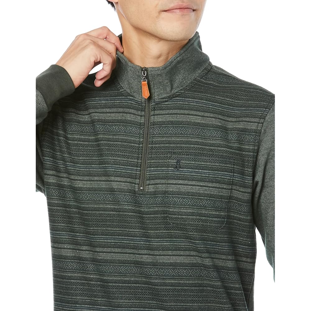 [Weathercock] Men's Sweatshirt, Long Sleeve, Selectable Sweatshirt, High Neck, Turtle Sweater, Half Zip, Checked Border, Smooth Brushed, With Pockets, Cotton Blend Tops03