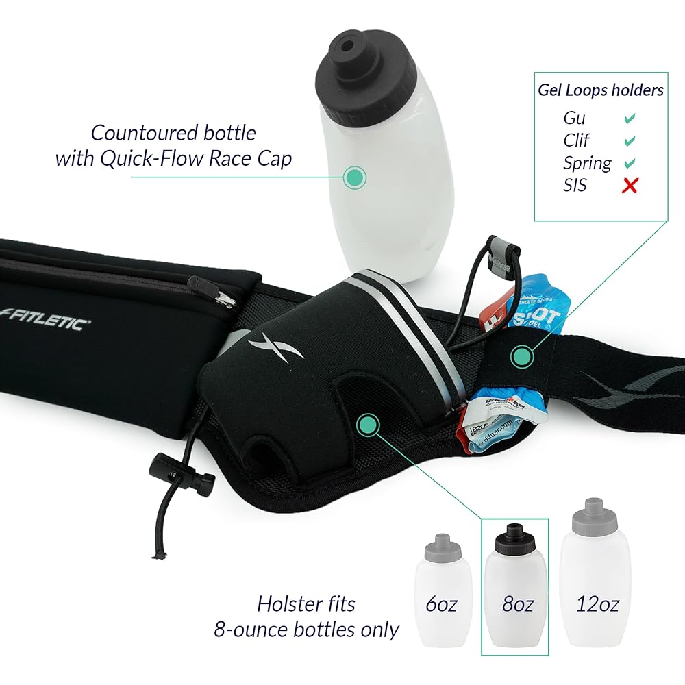 FITLETIC Hydra 16 Running Waist Pouch Waterproof Neoprene Material Compatible with iPhone6sPlus Size Includes 2 8oz Bottles Includes Bib Holder HD-08 BLK S/M