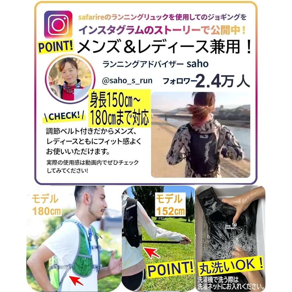 Safarire Running Backpack [Recommended by experts! Storage capacity, fit, and washability! ] Cycling bag, lightweight, small, men's, women's, hydration trail, planned and sold by a Japanese company