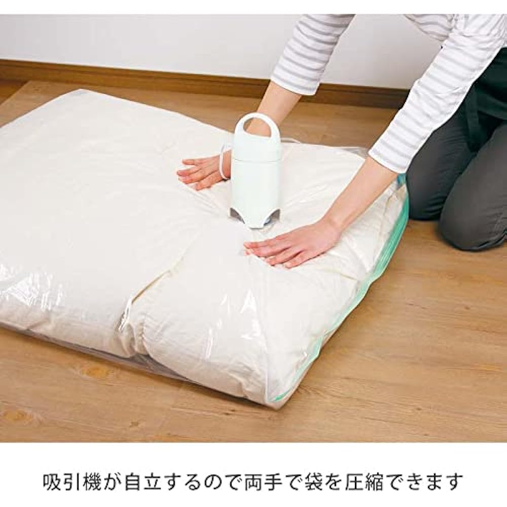 Although it is compact, it has excellent suction power! Convenient electric suction machine that does not require a vacuum cleaner. Convenient valve that opens and closes automatically. Stores neatly using a compression bag. Compact size so you don't have to worry about storage space.