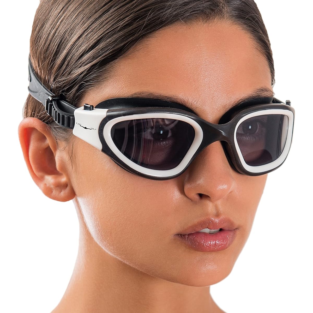Better Field of View ~ Wide polycarbonate lens with anti-fog coating and 100% UV protection (Cat3 UV400 standard) provides the best 180° field of view and distortion-free optics above and below the water surface. Even more comfortable~Ultra-soft silicone double gaskets are designed to stretch to the unique swimmer's contours and provide just the right level of suction without putting undue pressure on the eye area. - ✓ Superior anti-slip design: Unlike other single strap goggles, our split strap design ensures the goggles stay firmly on your head even during the most vigorous swimming. Furthermore, the one-click system makes it easier and faster to adjust the strap size. This can also be done while swimming. - -