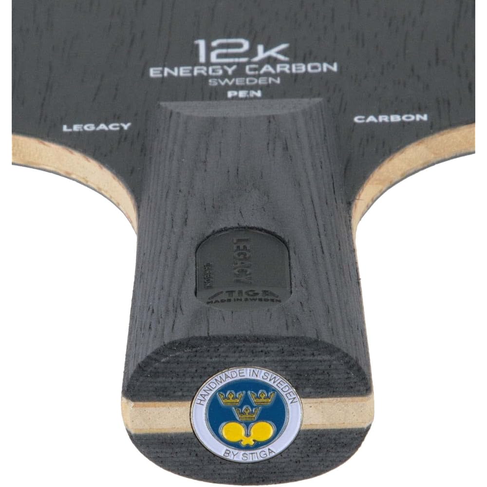 Aggressive performance and cool design. The Legacy Carbon is a 5 wood + 2 carbon racket that combines new 12K Energy carbon fiber with classic Stiga wood. The new high-performance 12K Energy Carbon is based on Spred Tow carbon fiber technology and uses 88g of carbon fiber per square meter. This lightweight carbon fiber amplifies the racquet's energy and distributes it across the entire surface, creating better energy transfer.