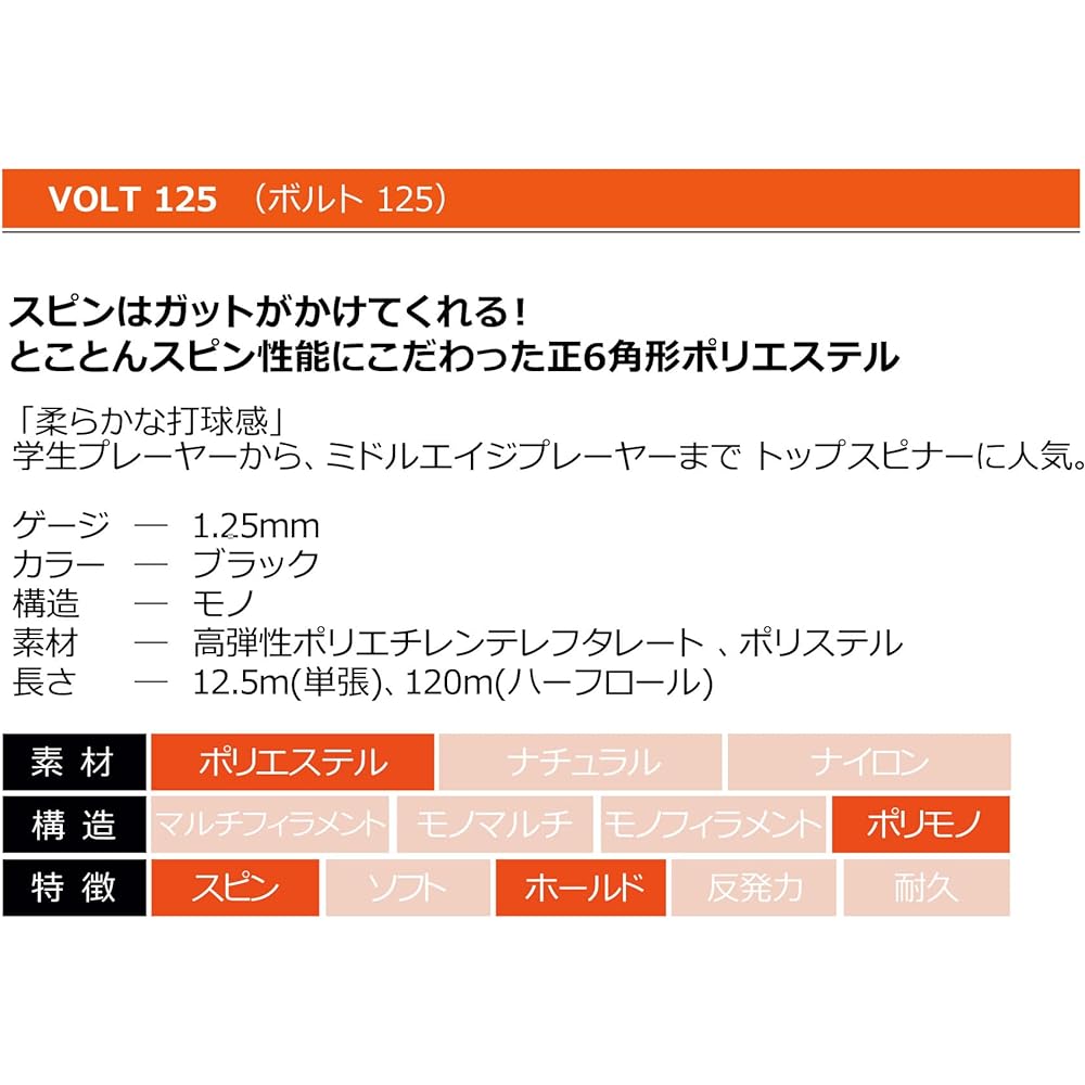 [Gauge] 1.25mm [Length] 12.5m [Material] Polyester/High elastic polyethylene terephthalate (PET) [Cross-sectional shape] Hexagonal [Color] Black [Country of origin] MADE IN JAPAN