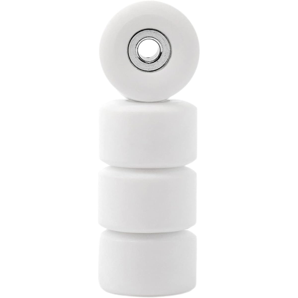 We've taken all of the feedback from our first release and worked to make these even better. Apex wheels have bearing pockets - Full custom bearing lock that prevents bearings from coming off except while using a bearing press. Plus, we've further fine-tuned our custom bearings for even better spin - the ability to fully tighten the locking nuts means these wheels will spin forever. Apex Series Set of 4 New Street Style Fingerboard Wheels "White Snow". Cheek Tuning's Apex Series wheelset uses premium urethane. New Street Style wheels hit the sweet spot with a 71D durometer. Not too hard, not too soft. 7.7mm diameter, 4.9mm width. These wheels are easy to ride on any surface and do tricks on. These custom wheels are manufactured in the USA with premium quality urethane. Many fingerboarders love the sound that urethane wheels make as they power slide across a surface or make a sharp turn. Designed and manufactured in the USA. Great for riders of all skill levels. Includes Teak Tuning sticker. CHOKING HAZARD: Small parts. Not for children under 14 years old. Teak Tuning products are designed and manufactured for teens and adults. Product contains small parts and is not safe for mouth placement due to materials and choking hazard. Keep all Teak Tuning products out of reach of children under 14 years old.