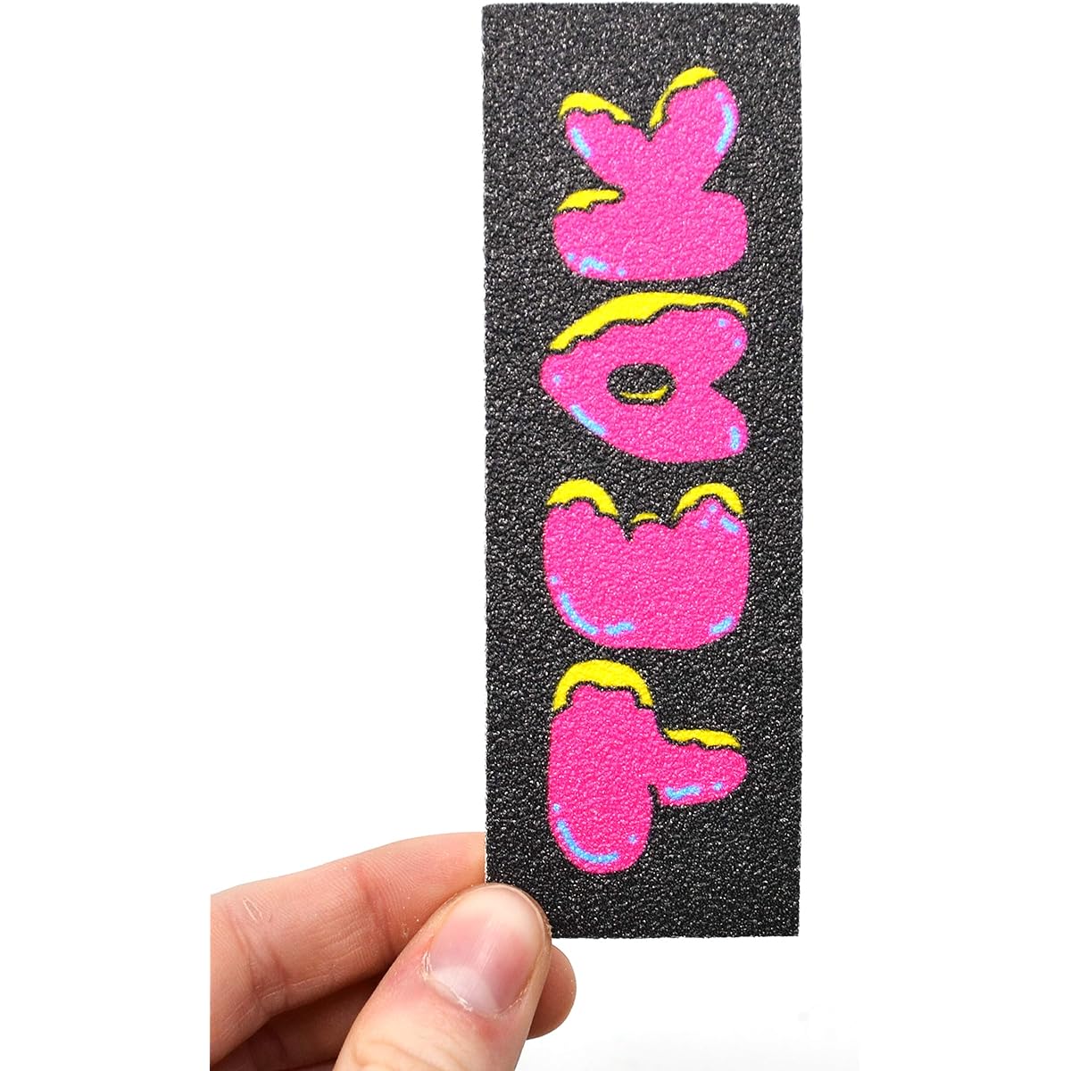 Skate Grip Tape || Premium fingerboard skate grip tape. Each pack contains 3 sheets of grip tape. Tape features a black background and a pink Teak Donut logo. Each sheet is 114mm long and 38mm wide. Comfortable Grip for Optimal Control || Features a rough texture similar to realistic skateboard grip tape. Grit provides a comfortable grip and allows for optimal control during tricks, grinds, slides and dark slides. Easy to Apply || Sheets of tape are self-adhesive, making them easy to apply. Made in the USA || Sheets are custom designed, printed and cut right here in the USA. For Riders of All Skill Levels || Perfect for riders of all skill levels. Includes a free Teak Tuning Sticker. Choking Hazard: Contains small parts. Not suitable for children under 14 years of age.