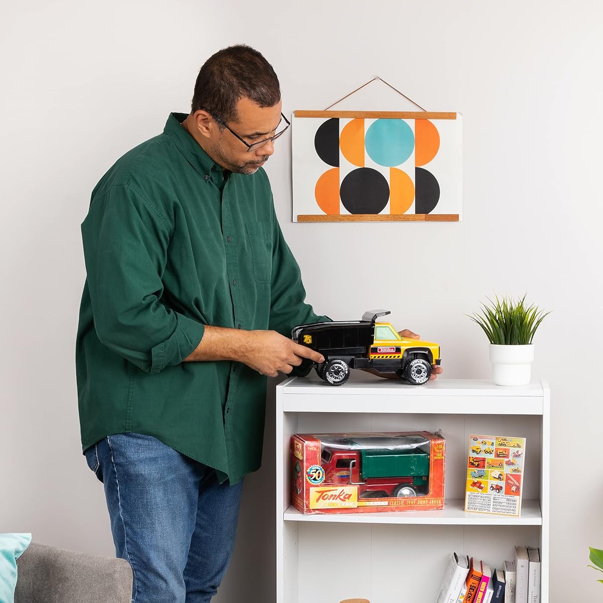 Take charge of the job site with the Tonka Steel Classics Quarry Dump Truck. Enjoy hours of fun as you load rocks and sand in the truck bed, haul them in and dump them like a pro. This 13-inch long Quarry Dump Truck is built to be Tonka tough with cold-rolled steel. The truck bed also articulates for a realistic building play experience! Roll through the construction zone in style with these chrome-accented tire rims. This Tonka Truck comes in bright colors and can be further colored with yellow Tonka decals. Join Tonka and celebrate 75 years of TONKA TOUGH play with the 75th anniversary logo on the dump bed. Together, we are Tonka! Tonka aims to inspire kids, parents and grandparents to put down the screens and get back to playing together.