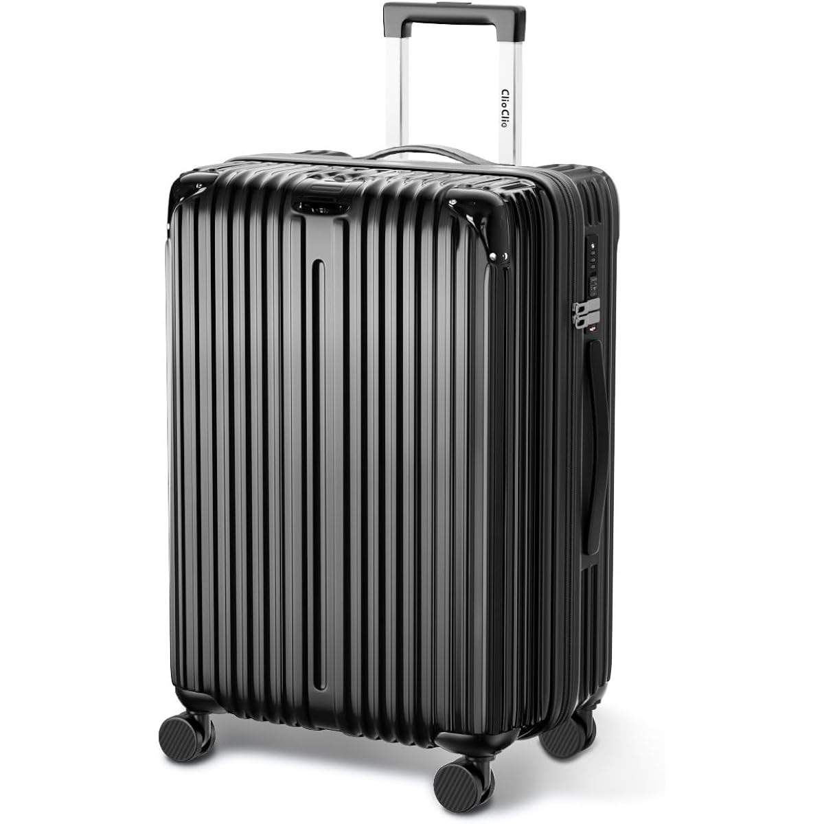 [ClioClio] Suitcase, Carry Case, Carry Bag with Expansion Function, Ultra Lightweight, Quiet, Double Casters [360 Degree Rotation & Removable] ABS+PC, Shockproof, Anti-Theft Zipper, Equipped with TSA Rourke, Travel, Business, Business Trip (Black, M Size