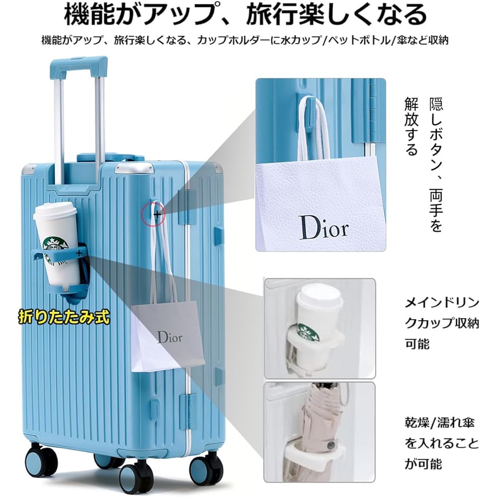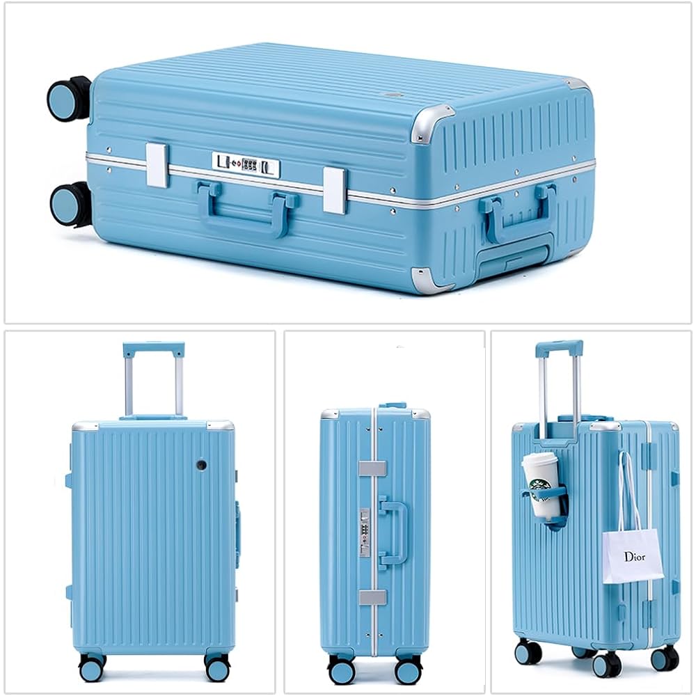 [WEGRET] Carry Case, Aluminum Frame Suitcase, Suitcase with Cup Holder, Popular Carry Bag, 360 Degree Rotation, Quiet Double Casters, TSA Lock Travel, Business Trip 3023 (XXL Size/More than 7cm/90L/Consignment Required, Blue)