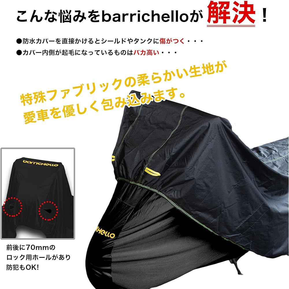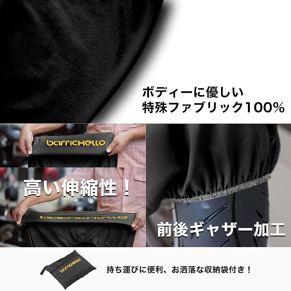 The Barrichello inner and indoor bike cover, which has been well received, has been re-released in response to customer feedback! I made it with confidence, so please use it. This cover was created just to protect your car from scratches and dust indoors. Therefore, we use 100% special fabric made from high-quality materials. The soft fabric wraps around your car. Lock hole processing for front and rear wire locks! The sizes are 3L sizes: S, M, and L! For compatible car models, please see the compatibility chart in the image. We have posted images of the product worn on actual bikes. Please refer to it and make your selection. The color is black, which is the Barrichello identity. The Barrichello logo is printed on the front, so you can see the front and back at a glance. A dedicated storage bag is included. ``Barrichello'' bike covers are sold after undergoing thorough quality control and inspection, so please purchase with confidence. *Please note that due to the characteristics of the fabric, size exchanges are not possible.
