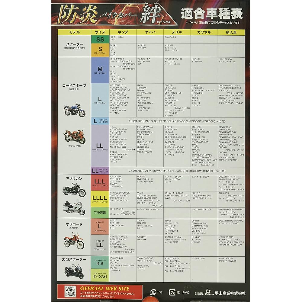 Hirayama Sangyo Flame Retardant Bike Cover Kizuna 4L