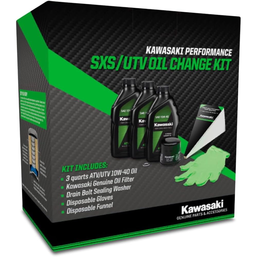 2008-2013 Kawasaki Teryx750. Includes oil, filter, drain bolt washer, gloves, and funnel.