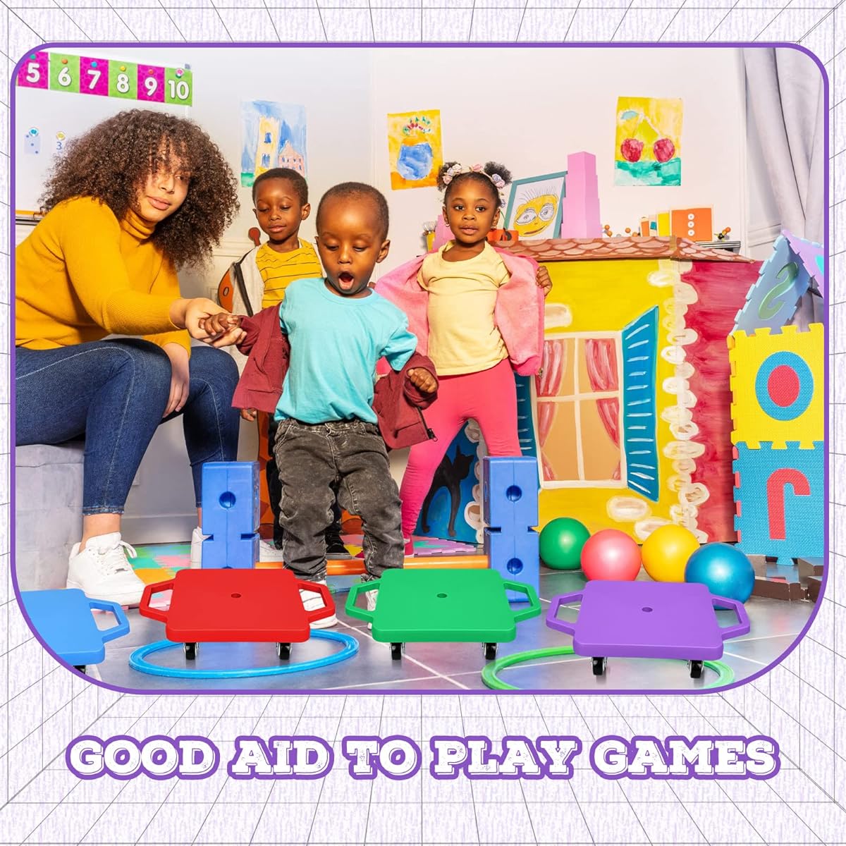 Entertainment Equipment for Kids: You will receive 8 plastic scooter boards. There are 4 colors in total, which can meet your daily needs. Perfect for kids and adults who want to have fun and get some physical activity. Build Motor Skills: Our floor scooter boards are not only fun, but also have many benefits for physical development. By participating in different movements, such as sitting, kneeling, and standing on the board, it promotes coordination, balance, and core strength, helping kids develop their upper and lower body while having fun. High-Quality Material: Our sports scooter board set is made of high-quality plastic material, with smooth rotating casters and convenient handles for effortless movement and control. The plastic wheels will not scratch the floor and have a noise reduction effect. Suitable Size: Each sitting scooter board measures approximately 11.8 x 11.8 inches/ 30 x 30 cm, with a wide base that makes it comfortable while sitting or using the scooter board. You can play for a long time without discomfort or strain. Multiple Occasions: The kids scooter can be used both indoors and outdoors. Gym class, asphalt road, underground school gym, playground, home and many hard floor surfaces; also suitable for a variety of activities such as races, obstacle courses, creative play.