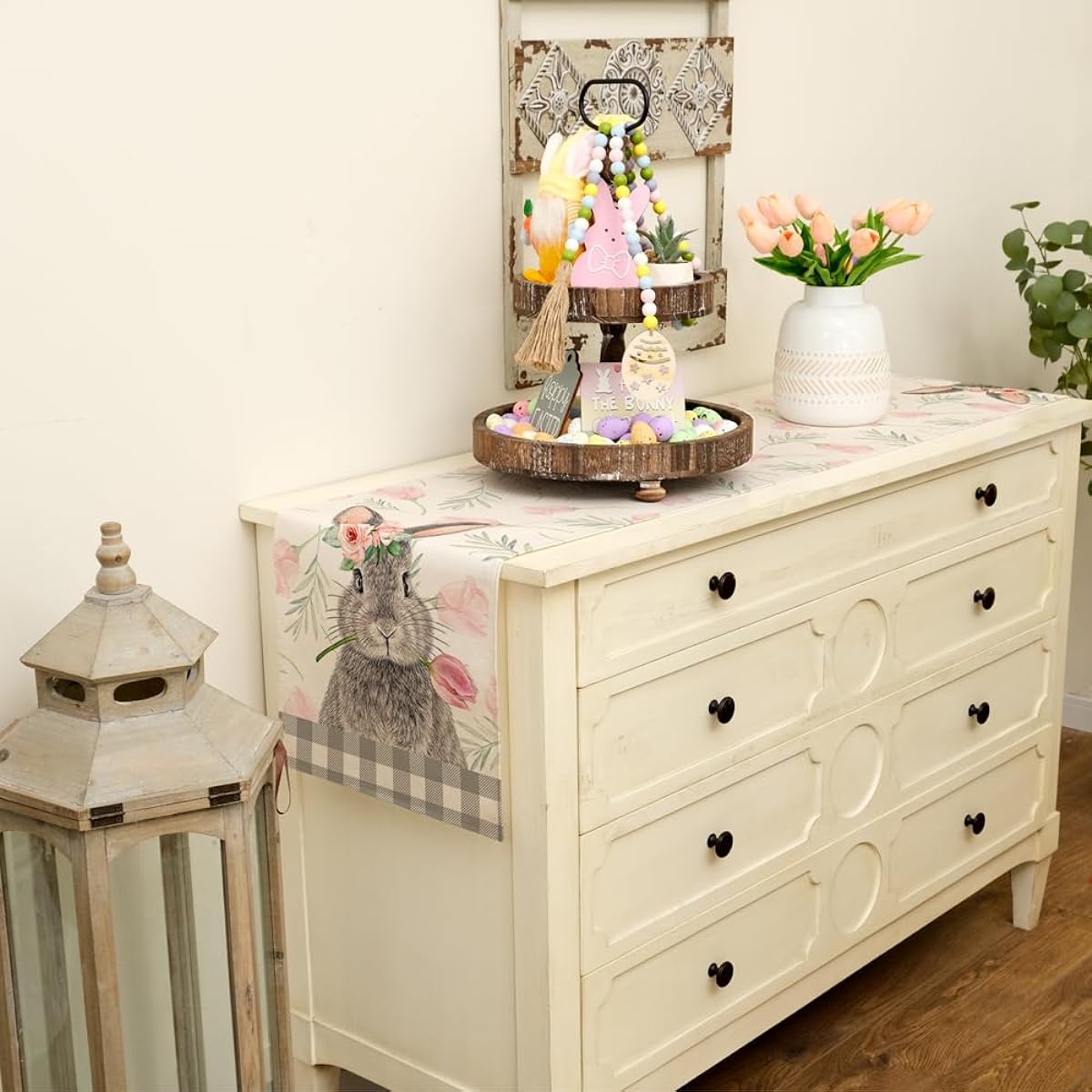 ARKENY Easter Table Runner 72" Rabbit Tulips Coffee Home Dining Indoor Seasonal Spring Holiday Farmhouse Tabletop Decor AT383
