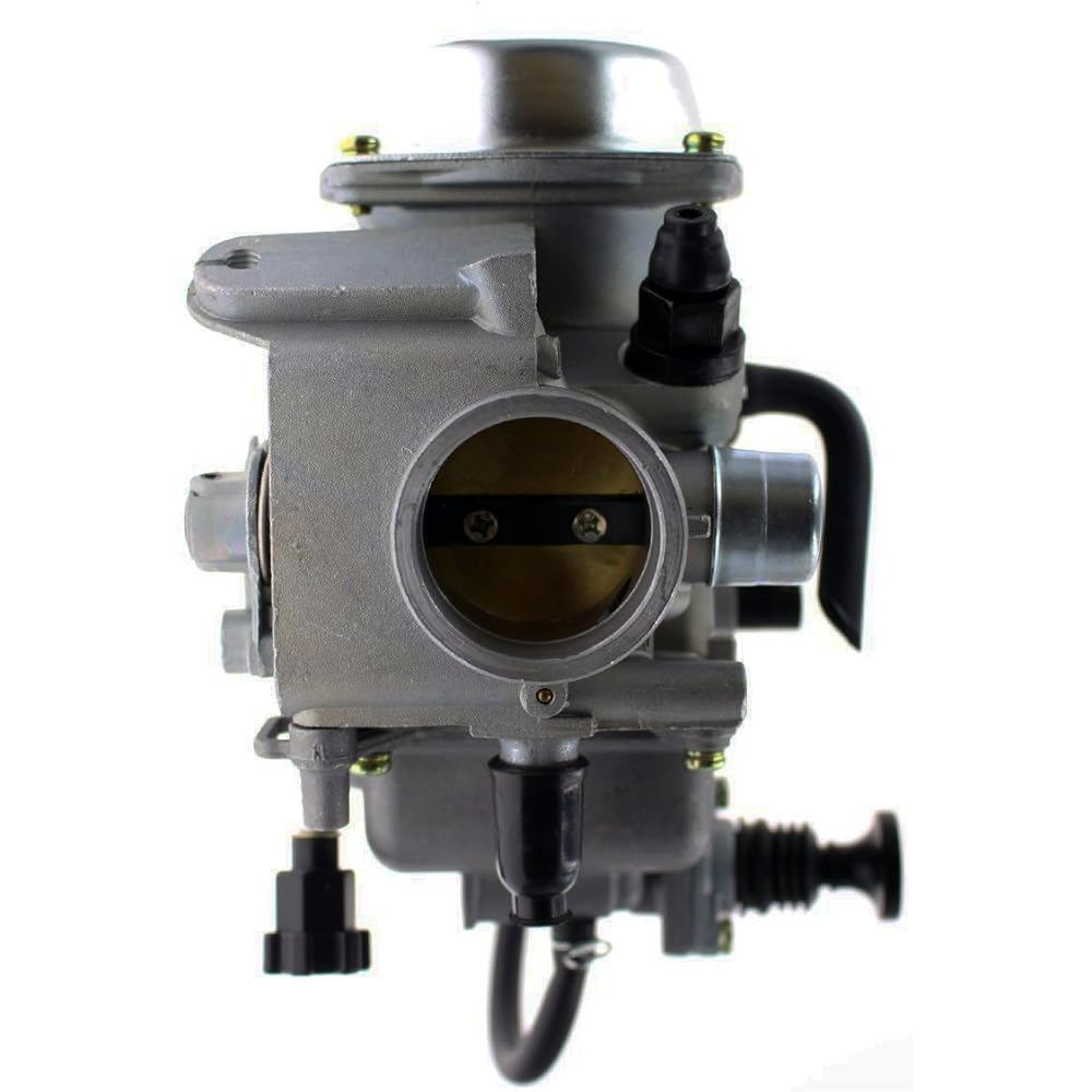 High quality aftermarket part. Compatible models: Honda TRX450S Foreman 1998-2001 Honda TRX450ES Foreman 1998-2001 Honda TRX450FE Foreman 2002-2004. Honda TRX450FM Foreman 2002-2004 Specifications: Inner diameter (intake side): 33mm. Outer diameter (intake side): 39mm. Inner diameter (air filter side): 50mm. Outer diameter (air filter side): 54mm. Material: Zinc alloy. Features: High quality, very durable, in good working condition, easy to install. Package Contents: 1 x Carburetor. 1 x Black Throttle Base Cover 1 x Throttle Base Cover Screw Please make sure the part number is correct before ordering.