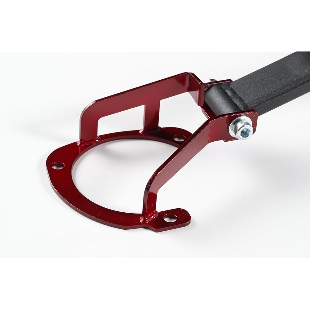 - A strut tower bar that is lightweight and highly rigid by adopting a hollow aluminum shaft with a width of 50 mm and a thickness of 15 mm. - Improves the vehicle's dynamic performance by suppressing body distortion during cornering and braking and maximizing suspension performance. -The shaft part is coated with a special black coating after blasting, making it more resistant to scratches than regular black and creating a high-quality texture. Furthermore, the 50mm wide shaft gives off a strong presence in the engine room.・The BLITZ logo is laser engraved on the center of the shaft, giving it a high level of durability and quality.・The bracket part has achieved high strength by adopting a special design for each vehicle type that incorporates BLITZ's know-how. Furthermore, the red metallic paint not only adds strength but also contributes to sprucing up the engine room.・Compatible with DAMPER ZZ-R SpecDSC, preventing interference with the motor and allowing simultaneous installation.