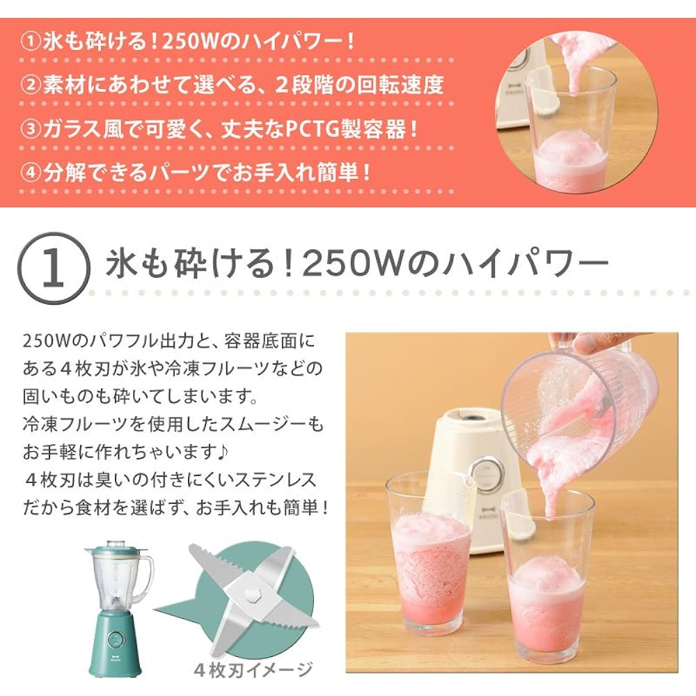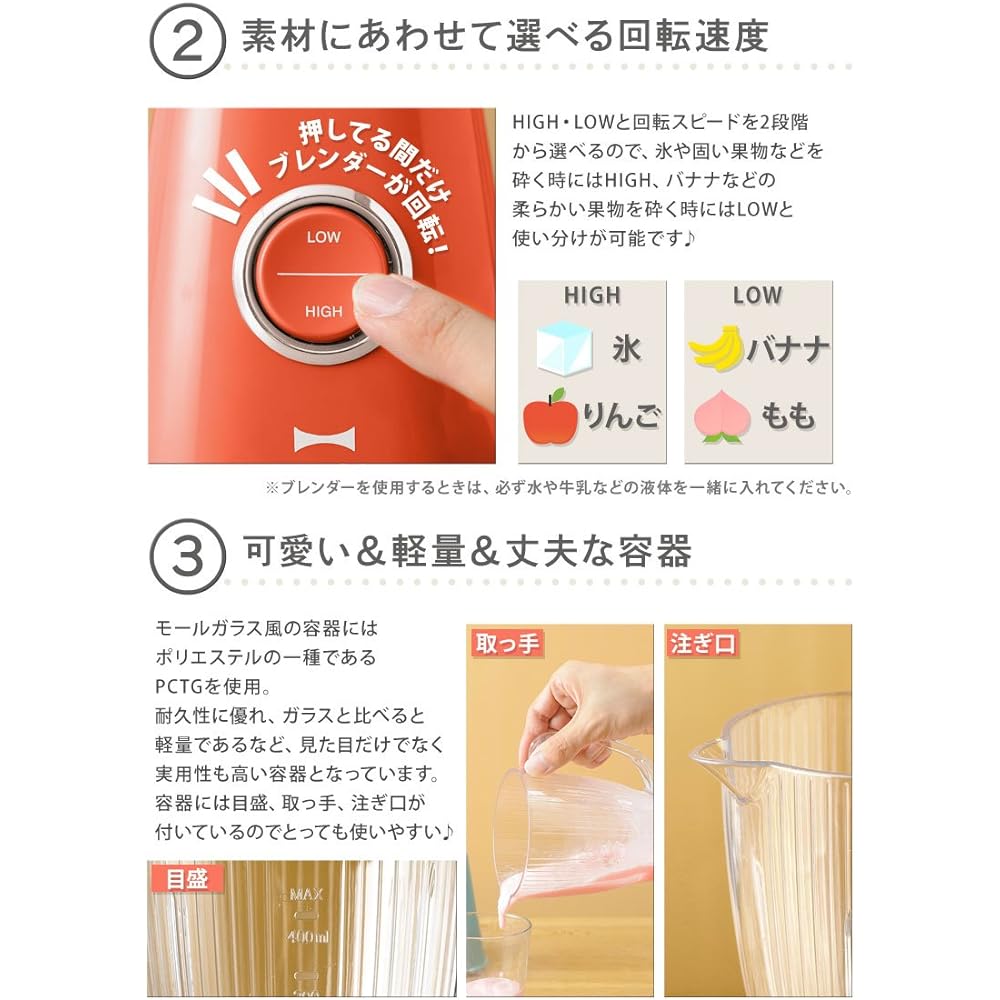 Size: Width: 154mm Height: 306mm Depth: 117mm Capacity: 400ml Weight: 1100g Material: Body: ABS, jar: PCTG, lid: PP, cutter: stainless steel, measuring cap: AS Power supply: AC100V 250W Continuous use time : 1 minute Mixer: Low speed/high speed 2-step switching Cord length: Approx. 1m
