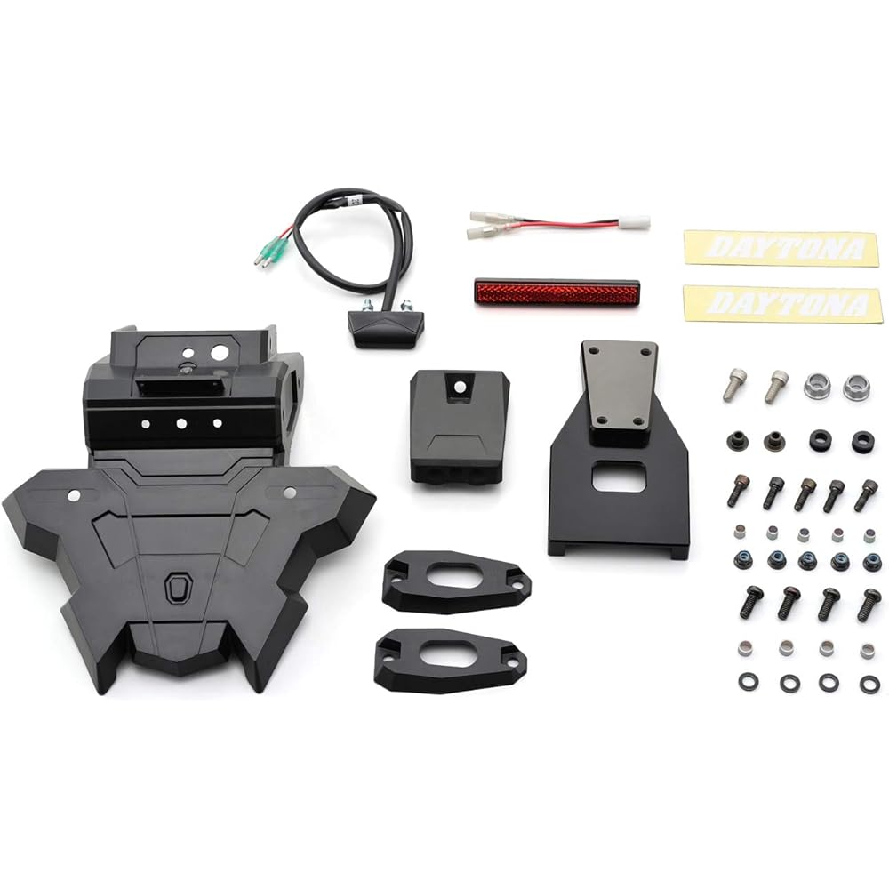 A next-generation fenderless kit that uses PP resin that is strong against vibrations just like the genuine product. The car body is attached using a machined aluminum bracket specific to the car model. Compatible with 2021 new standard number angle. Precautions for use *Do not attach commercially available number frames (bases) or electrical accessories that are attached to license plates to this product. Excessive weight or vibration amplification may cause damage to the stay, etc. *Cannot be used with Daytona aluminum license plate holder