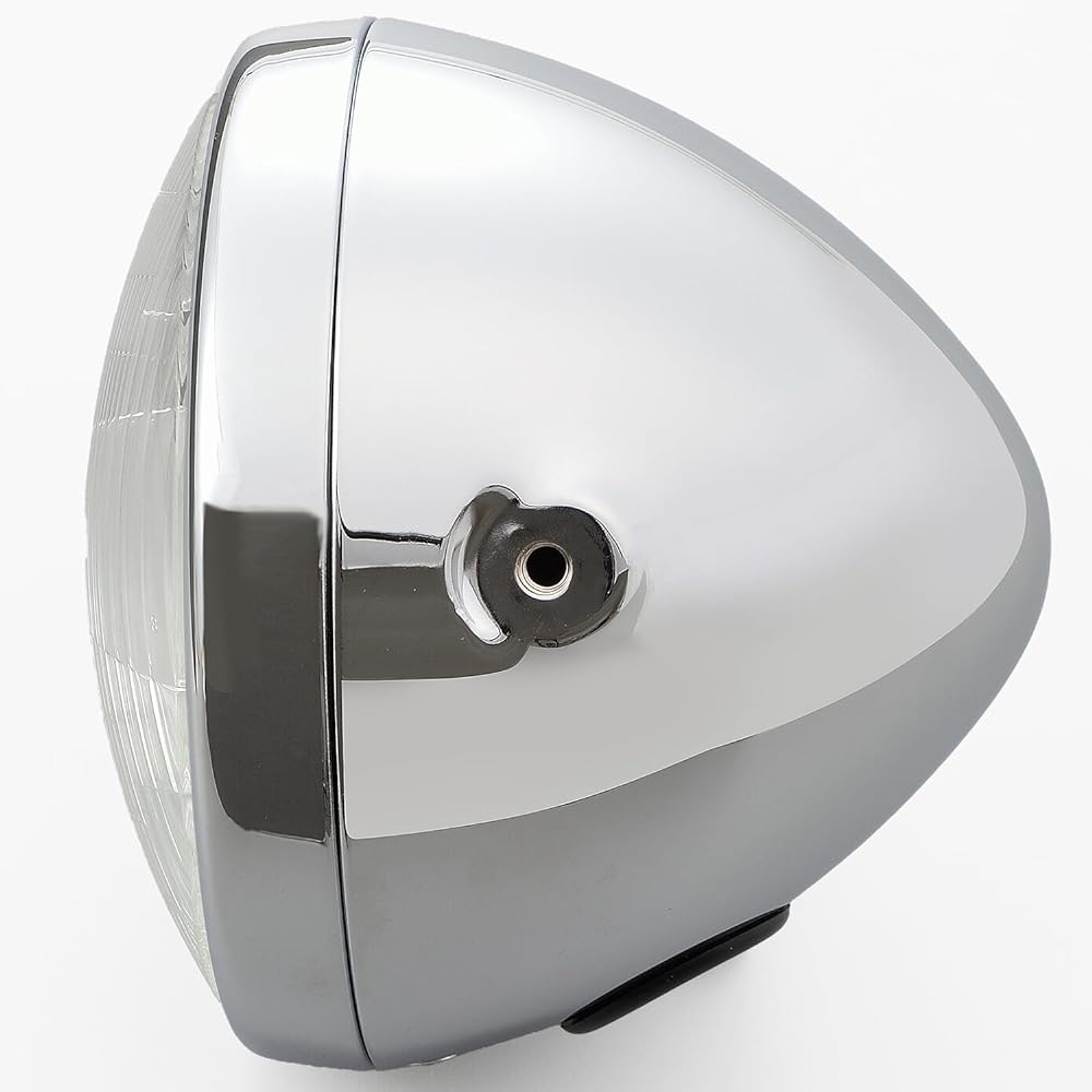 [Application] Lucas replica headlight suitable for vintage style customization [Specification 1] Lens surface: Made of glass with a diameter of Φ170mm [Specification 2] Headlight case: Steel chrome plated [Specification 3] Light case mounting hole diameter: M8xP1. 25 [Product composition] Headlight body, H4 headlight bulb (12V60/55W), button bolt x2, spacer x2 [Others] The distance between the left and right headlight stays is 174-194mm, and the headlight stay must be at least 140mm