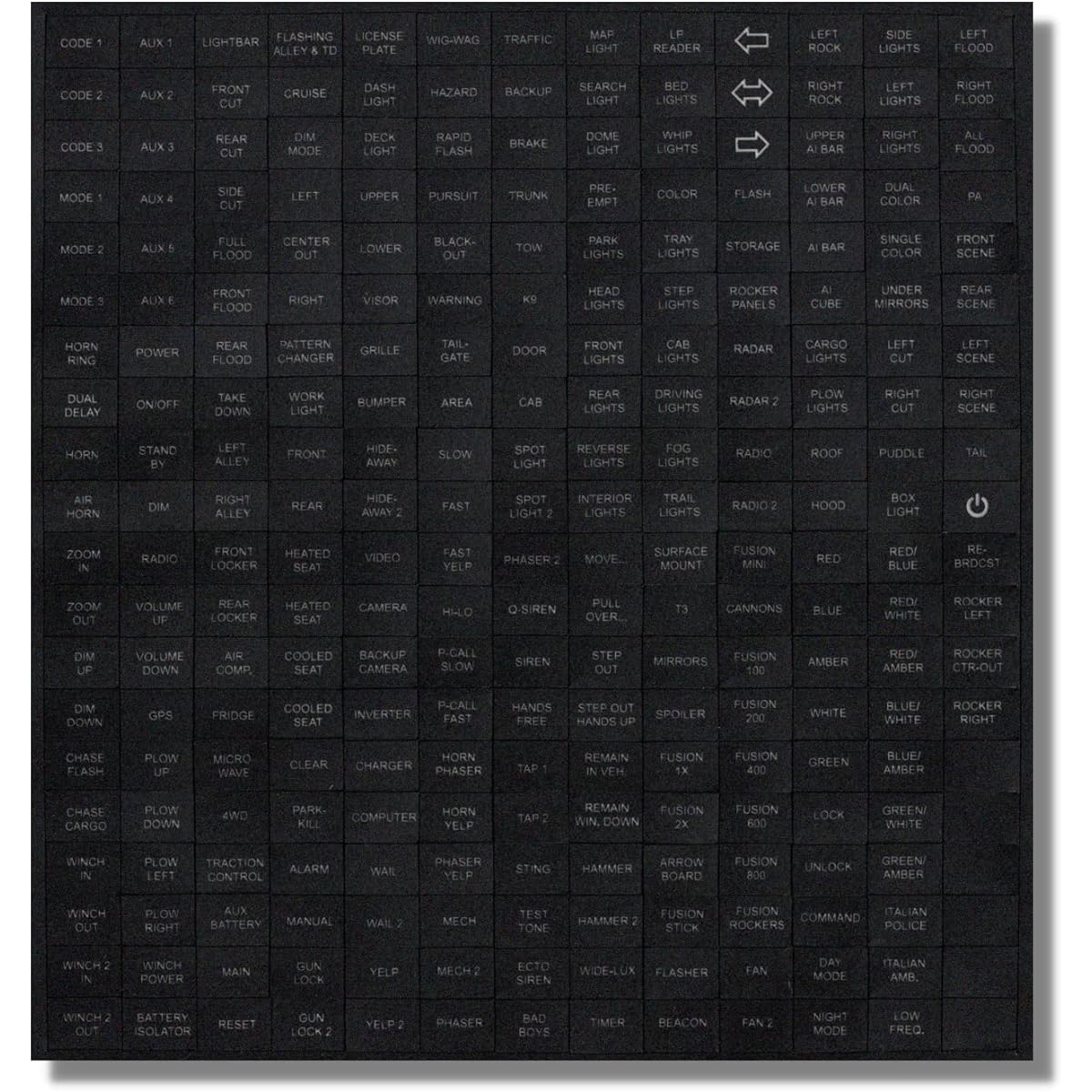 This is a replacement sticker set for Feniex 4200 Mini and Feniex Typhoon. A full set of button labels; the exact same sheet originally shipped with your controller or siren. Perfect for replacing missing or worn labels. Perfect for assigning new functions or repurposing a controller. Does not fit full size Feniex 4200 controllers.