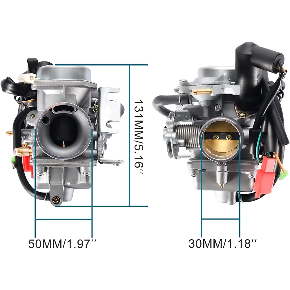 Dimensions Manifold Intake Diameter: 30mm, Manifold Outer Diameter: 36mm, Air Intake Mount Outer Diameter: 48mm. Firewing Diamo Turcia Roketa MC-62, MC-54B(VIN #5RY). Tank Touring 250DE-08 Vogue 260. Linhai Aeolus 260 300, Linhai Tank 260 JCL 260. Moto Bravo 260XY Lance Grand Touring 250 Xingyue XY260T-4 Joyner Sand Viper 250 Hammerhead Size: Dimensions Manifold Intake Diameter: 30mm. Manifold Outer Diameter: 36mm Inlet Mount Outer Diameter: 48mm Package Contents: Electric Choke Air Mixing Adjustment Screw Needle Jet Spring, Clip Vacuum Piston Float Set and Chamber Air Cut Valve Heater Port Overflow Nozzle Tube Goofit Key Chain About Quality: We are GOOFIT We guarantee only high quality products sold by. We accept returns of products without any reason. About after-sale service: First of all, we sincerely apologize for any return or refund for any reason. Please feel free to use it with any problems. Please contact us first, we will try our best to solve the problem. Our company is very important to all our customers. Customer satisfaction is our biggest driving force. About GOOFIT: GOOFIT was founded in 2000. We are the top website for online sales of ATV Parts, Go Kart Parts, Dirt Bike Parts, Pocket Bike Parts, Moped Scooter Parts. Company Culture: We are committed to providing the best products and services to our customers.