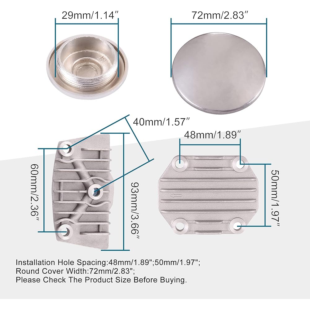 Mounting Hole Spacing: 48mm/1.89", 50mm/1.97", Round Cover Width: 72mm/2.83" (Please check the product appearance, size and shape carefully before ordering) Cylinder Head Cover Set Replacement for 70cc Horizontal Engine ATV Dirt Bike Go Kart. A gasket is installed to ensure a tight seal. Made of high quality aluminum, high performance and reliable stability, easy to install. [[TO REMOVE]]