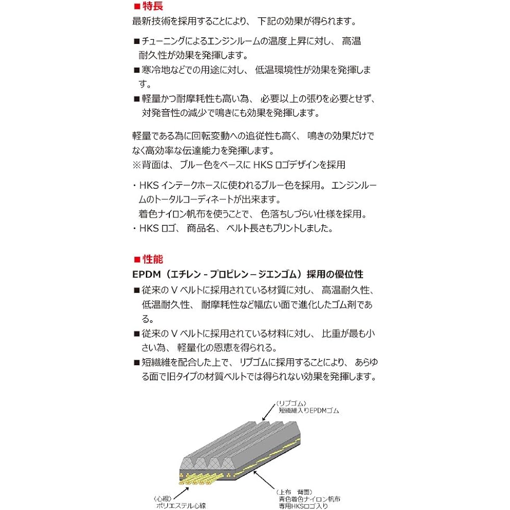 Newly released "Reinforced V-belt" which is a tuning part for the engine room. While dressing up, we protect the condition of your car using the latest technology. By adopting the latest technology, you can achieve the following effects: ●High-temperature durability is effective against increases in temperature in the engine room due to tuning. ●Low-temperature environmental performance is effective for applications in cold regions. ●Since it is lightweight and has high abrasion resistance, it does not require excessive tension and is effective against squealing by reducing anti-sound characteristics. *The back uses a blue-based HKS logo design and is made of colored nylon canvas, making it resistant to fading.・The HKS logo, product name, and belt length are also printed. Advantages of using EPDM (ethylene-propylene-diene rubber) ●This is a rubber agent that has evolved in a wide range of aspects, including high-temperature durability, low-temperature durability, and abrasion resistance, compared to the material used in conventional V-belts. ●It has the lowest specific gravity compared to the materials used in conventional V-belts, so you can benefit from weight reduction. ●By blending short fibers and using them in the rib rubber, it provides effects in all aspects that cannot be obtained with the old type of material Beut.