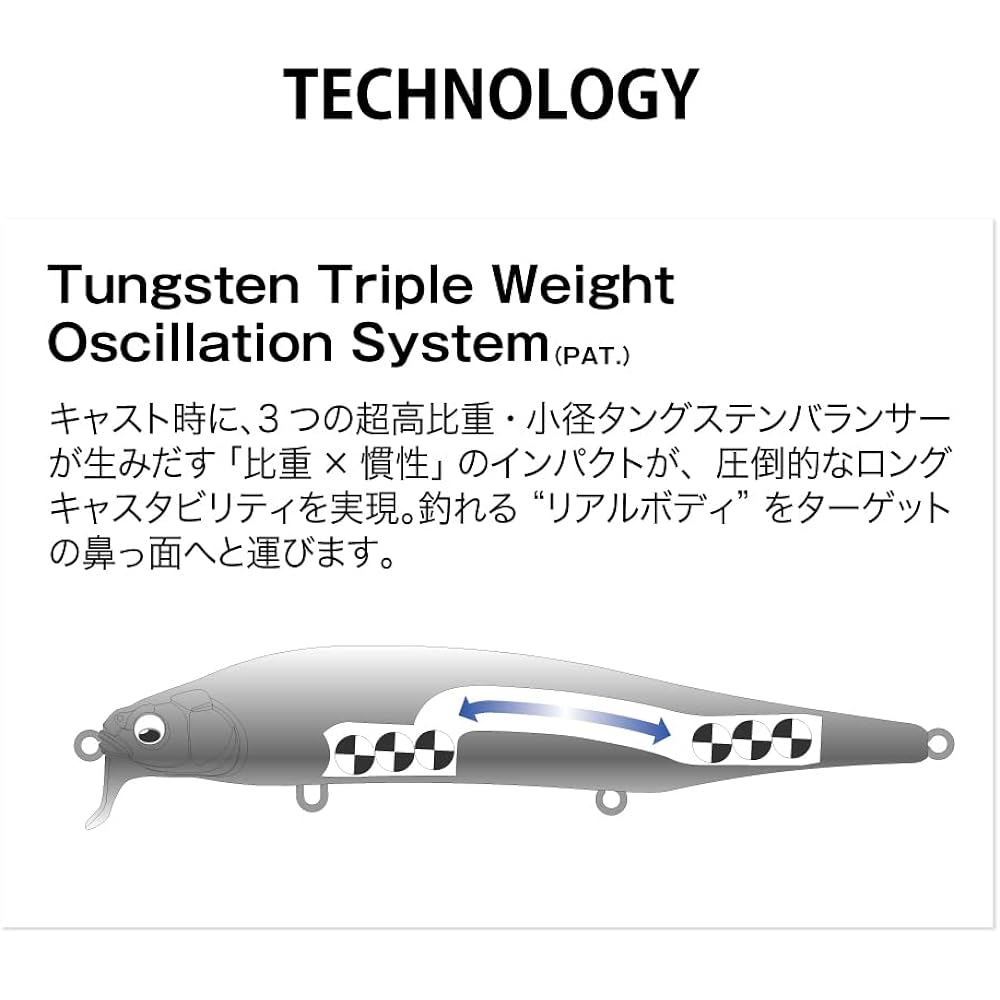 Kanata+1 SW is a diving model with a maximum diving depth of 3.2m, which is 1m deeper than the Kanata SW. Like the Kanata SW, despite its large size of 160mm, the pulling resistance is extremely light, and it also has the responsiveness to search areas at a good tempo. Further refined high pitch roll action creates natural tight waves and realistic flickering appeal that you wouldn't expect from a big body. The Kanata +1 SW allows you to approach from a high footing such as a breakwater or offshore embankment, and attack the range one step below. Demonstrates unparalleled strength in strategy. The high-impact minnow "Kanata +1 SW" has both an overwhelming presence and natural swimming that stimulates the prey center, allowing you to explore wider and deeper fields.