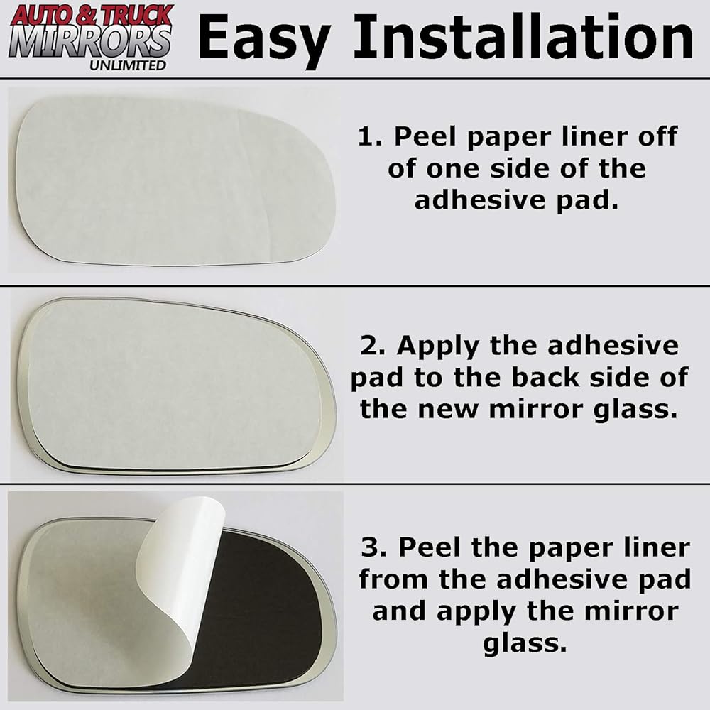 Included - Driver side mirror glass replacement with full size adhesive pad (glass lens only). Double-sided adhesive pad allows for easy installation, maximum adhesion (better than circular pads or strips), and optimal thermal conductivity (when heated). Each mirror glass and adhesive pad follows the shape of the mirror. Comes with a step-by-step instruction manual (may not be in Japanese). Mirror specifications - lower flat mirror. This mirror glass measures 7 3/16 inches diagonally. (Longest diagonal dimension from top corner to opposite bottom corner). Please measure your car mirror size and order the correct mirror. Please make sure the mirror you have matches the shape of the actual mirror in the photo, as there may be more than one option depending on your vehicle. Mirror glass replacements are not included as the plastic backing plate is not installed. HIGHEST QUALITY - The mirror glass is made from high quality glass that meets or exceeds OEM specifications, and the full adhesive pad is an automotive grade adhesive that can withstand even the harshest conditions. Mirror glass is of the highest quality, providing the performance, appearance, and clarity you need for optimal viewing without the hefty OEM price. COST-EFFECTIVE - Mirror glass replacement with full adhesive pad is a more economical solution than expensive mirror assemblies. Save time and money with this easy-to-install alternative. Vehicle Model - Fits 2013, 2014, 2015, 2016, 2017 2018 Ford Fusion Driver Side.
